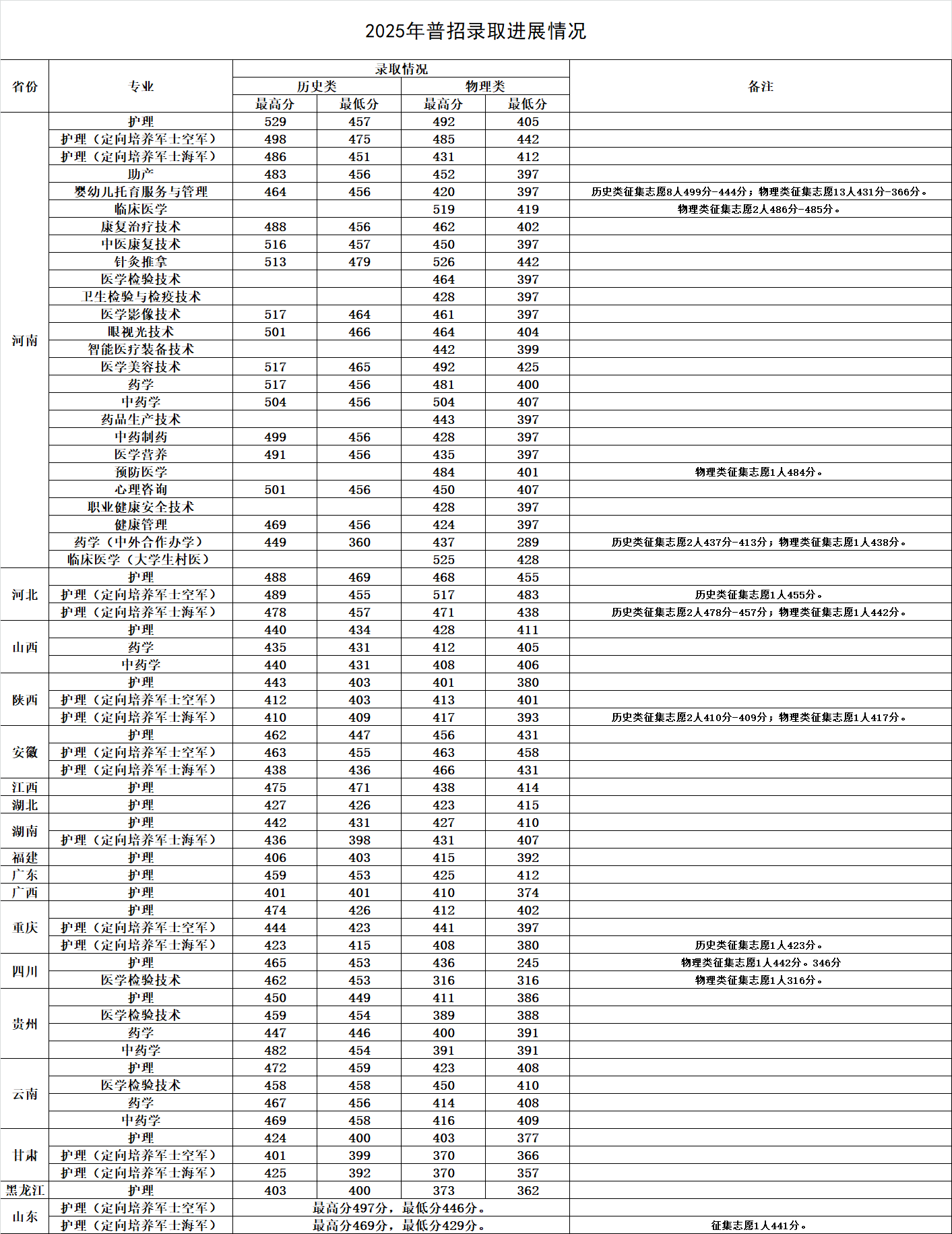 我校2025年普通专科招生录取工作已结束,现将录取进展情况公布,供考生参考。考生可登录学校招生信息网“录取查询”模块查询录取专业。学校于8月18日通过邮政特快专递EMS邮寄录取通知书,请同学们保持高考报名时填写的联系电话畅通,新生报到相关事宜请阅读快递中《新生入学指南》。2025年普招录取进展情况如下: