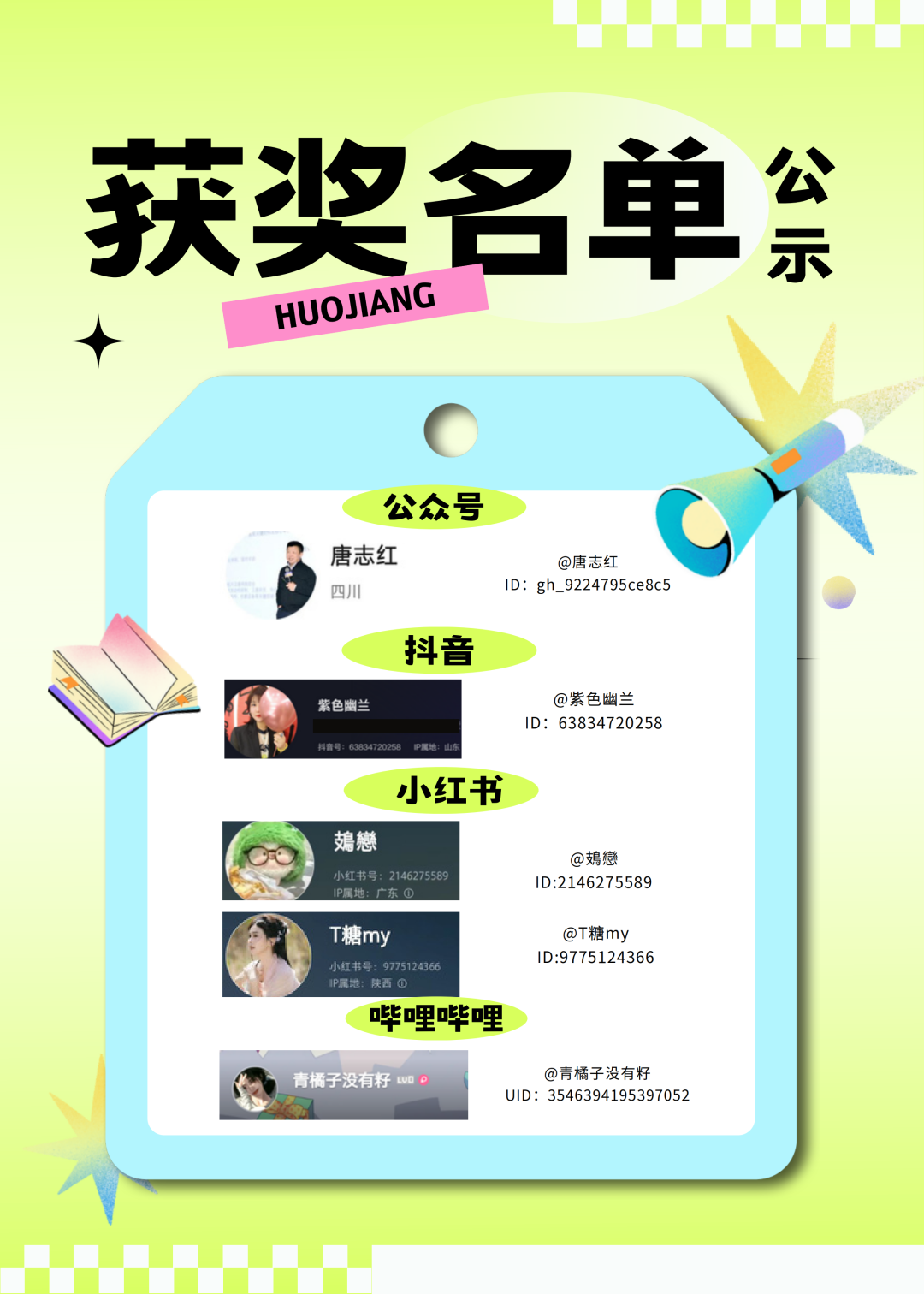 1. 官方将于3个工作日内通过各平台官方账号联系获奖者。