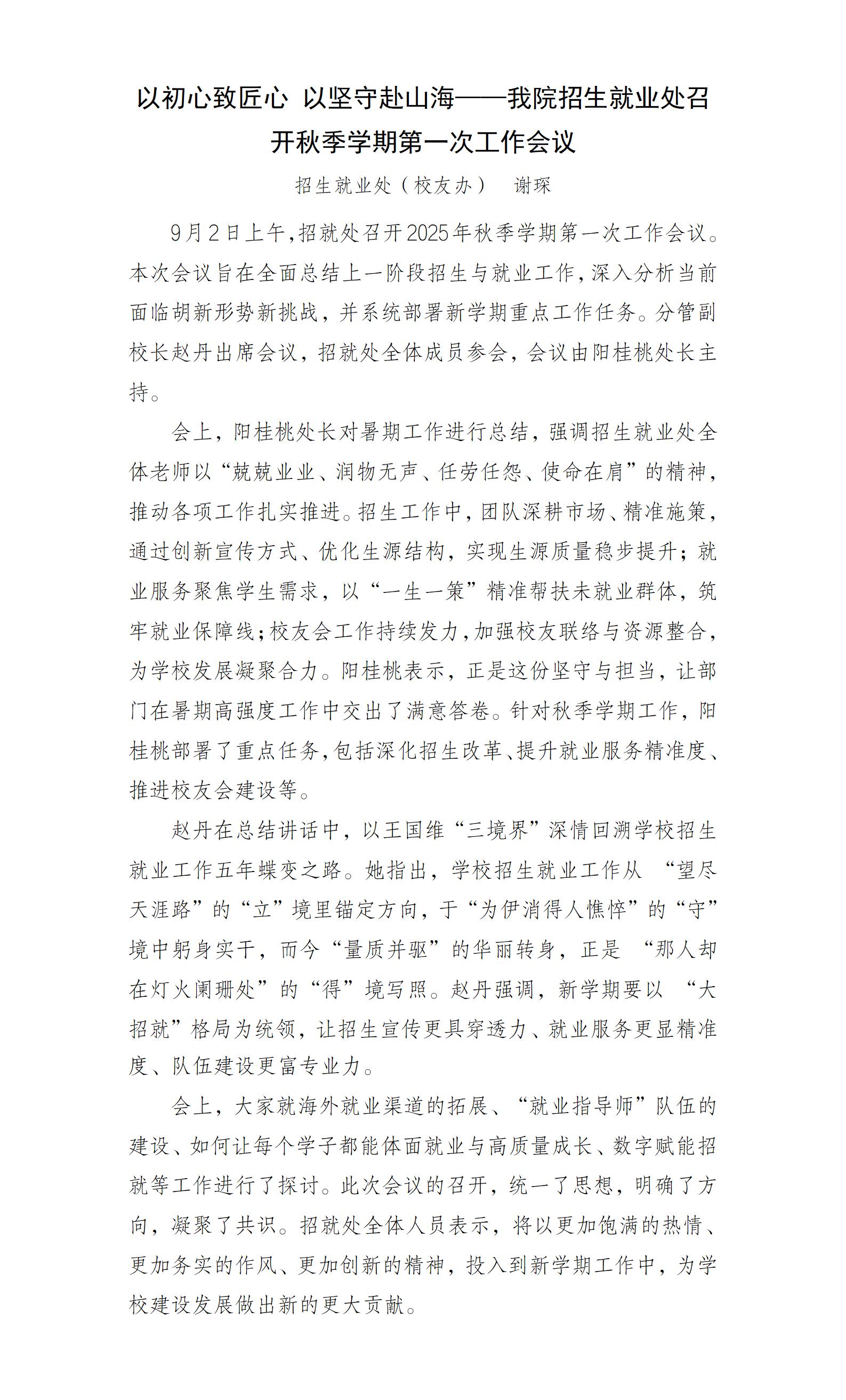 以初心致匠心 以坚守赴山海——我院招生就业处召开秋季学期第一次工作会议