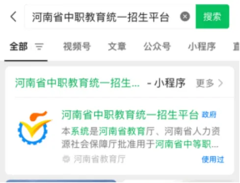 1.微信小程序搜索“河南省中职教育统一招生平台”进入报名;