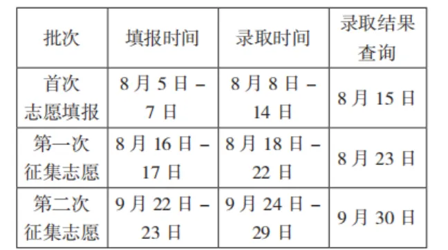 第二次征集志愿填报:9月22日9:00- 23日17:00