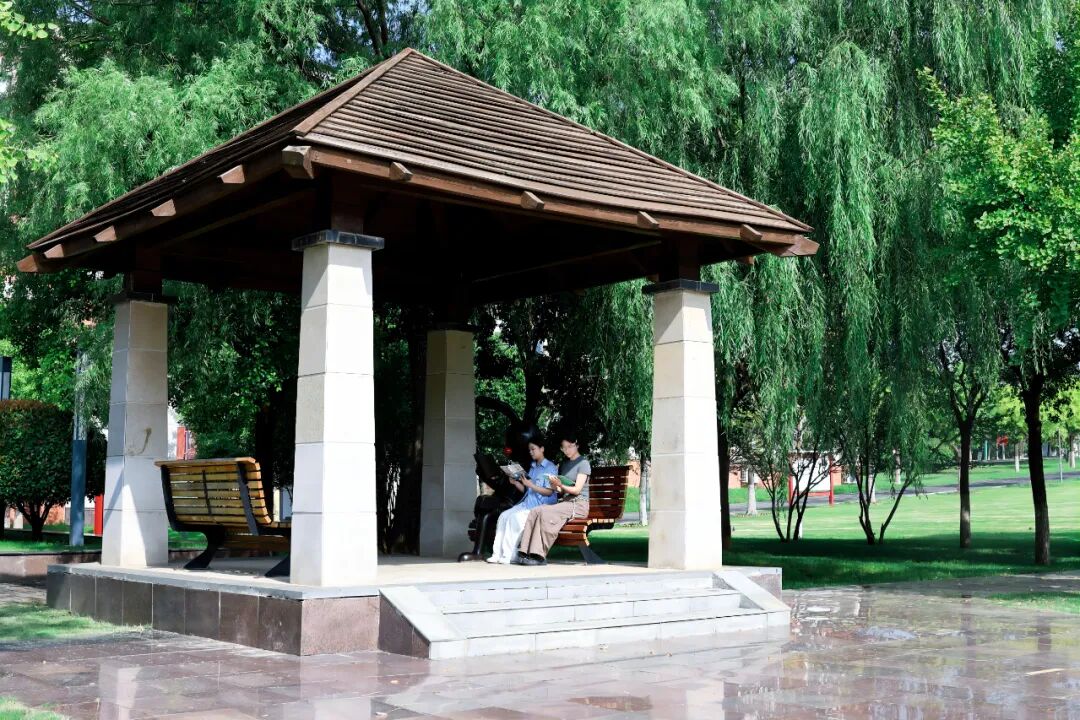 推荐指数:推荐理由:绿树成荫,好友相伴。这里是乘凉背书的清幽地,朗朗书声里,藏着城院学子对知识的热忱,是你沉淀匠心的书香秘境。