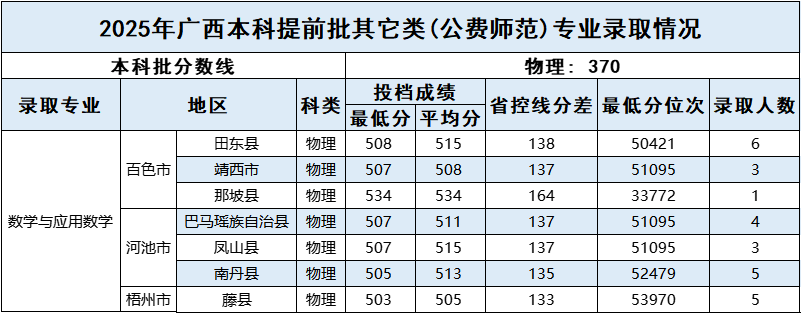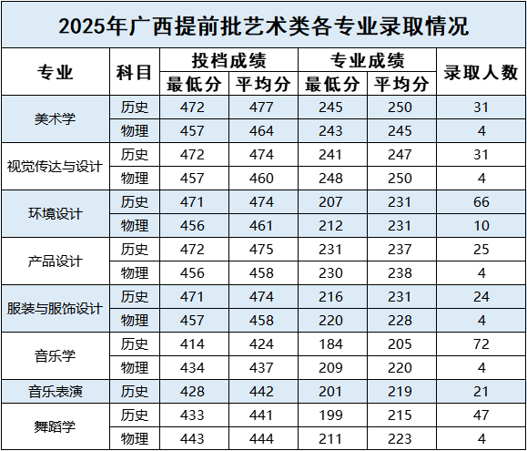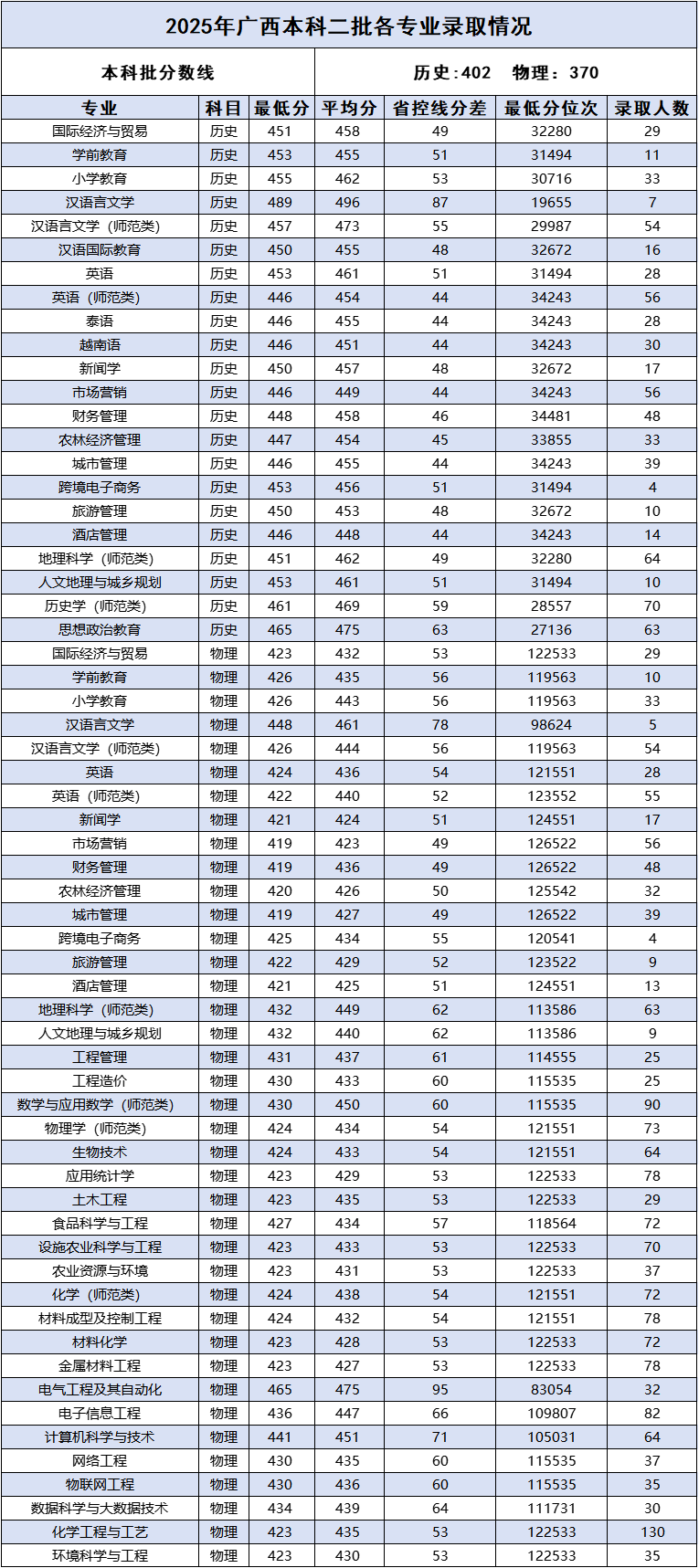 广西_2025年普通本科各专业录取情况