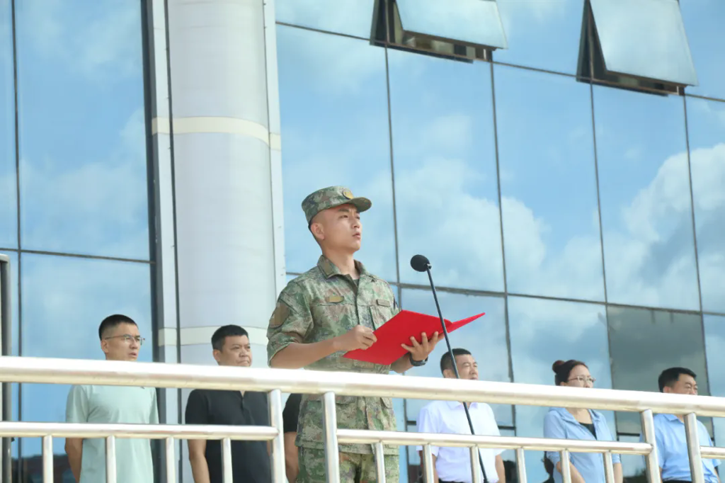 朱龙舟少校代表承训部队致辞。他指出,军训是国防教育的重要组成部分,是青年学生增强国防观念、锤炼意志品质、提升综合素质的重要实践载体。朱龙舟宣读了各连队教官名单,并承诺全体承训教官将严格遵循训练大纲要求,以高度的政治责任感、严谨的训练作风和专业的军事素养开展教学,科学安排训练内容,合理把控训练强度,全力保障军训质量,助力新生在训练中塑造坚韧品格、养成优良作风。