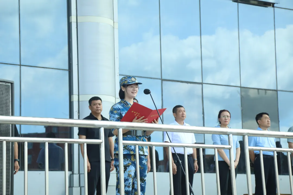 文学院2025级新生徐研硕代表全体新生表达了对军训的期待与决心,并表示,全体新生将坚决服从教官指挥,认真学习理论知识、参与技能训练,以实际行动践行“不负青春、不负使命”的承诺,全方位展现通师新生兼具青春活力与人文素养的良好精神风貌。