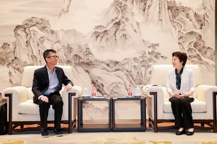 8月17日,中国宋庆龄基金会副主席沈蓓莉在雄安分别会见参加2025年宋庆龄少年儿童未来科学日暨第二十届宋庆龄少年儿童发明奖颁奖活动的香港特区和新加坡来宾及师生代表。