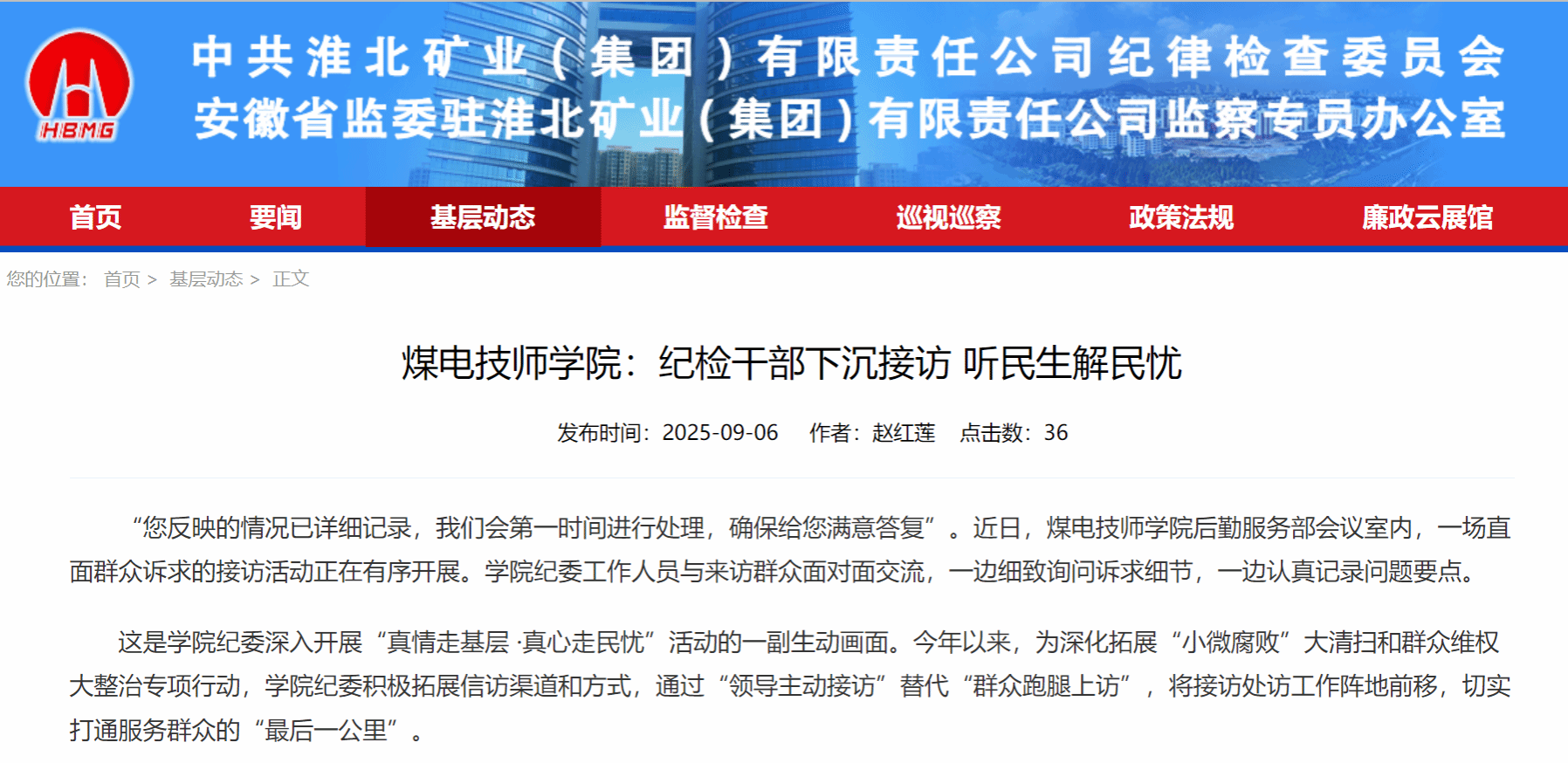 近日,淮北煤电技师学院后勤服务部会议室内,一场直面群众诉求的接访活动正在有序开展。学院纪委工作人员与来访群众面对面交流,一边细致询问诉求细节,一边认真记录问题要点。