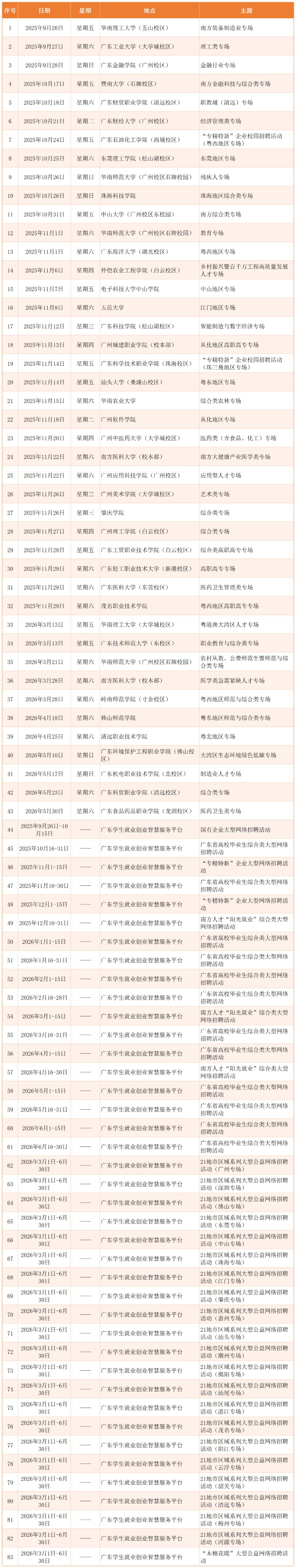 “就在南粤”广东省2026届普通高校毕业生系列供需对接活动安排表