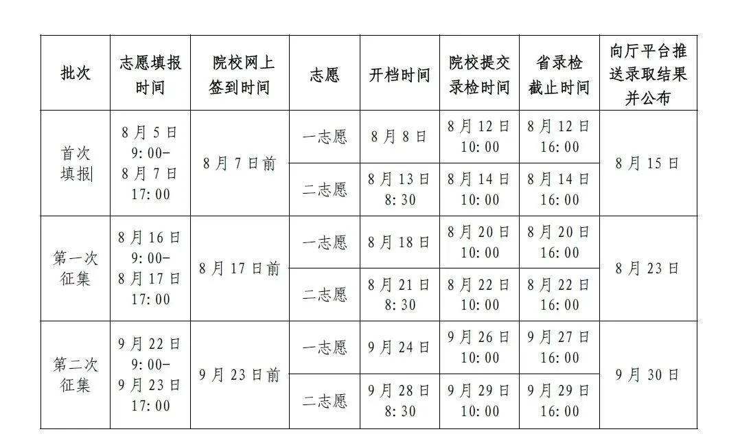 首次志愿填报:8月5日9:00-8月7日17:00