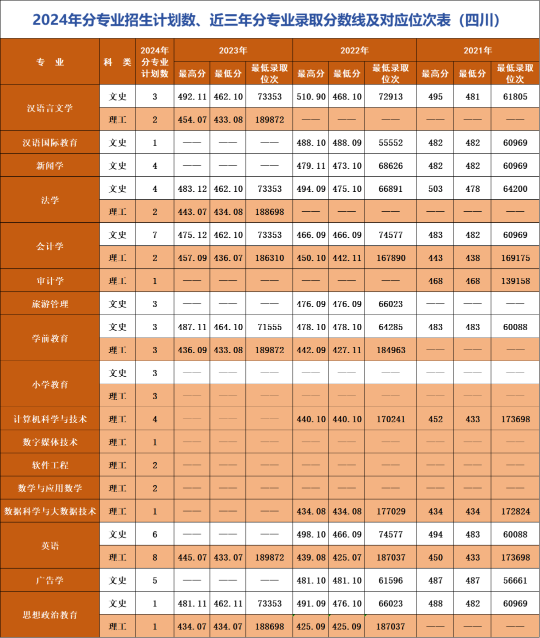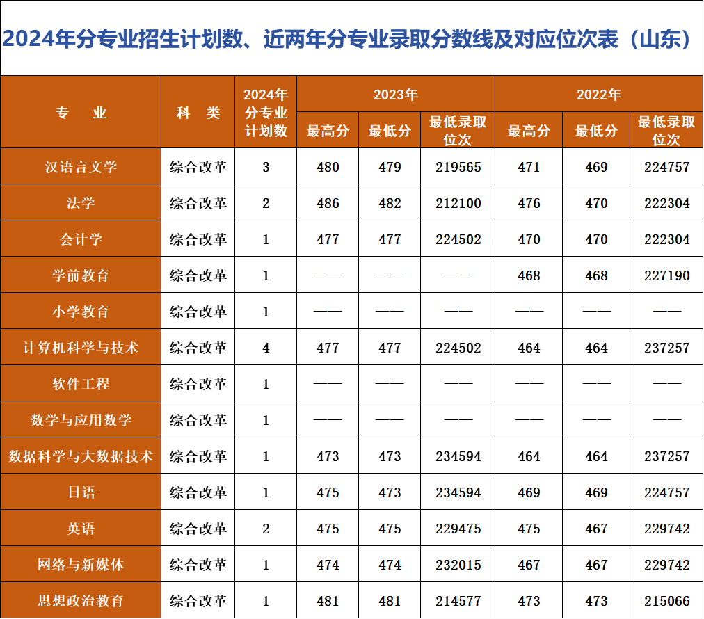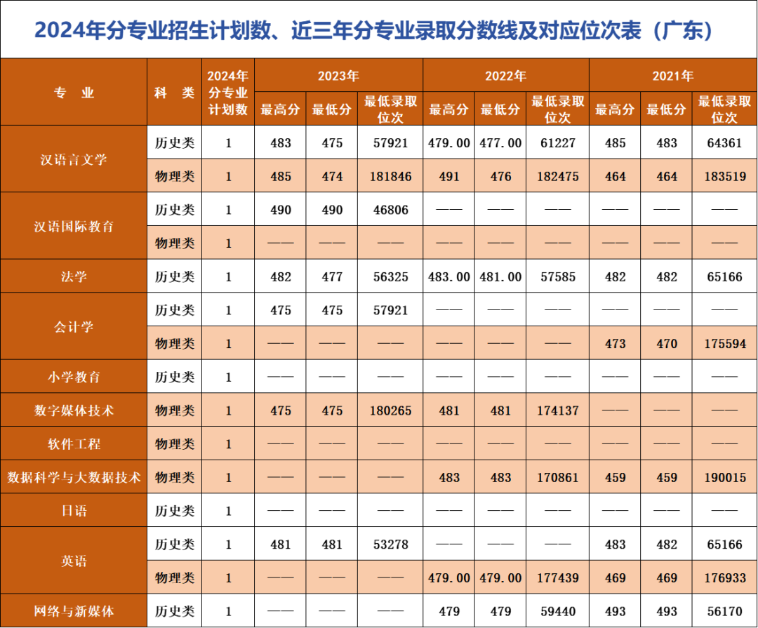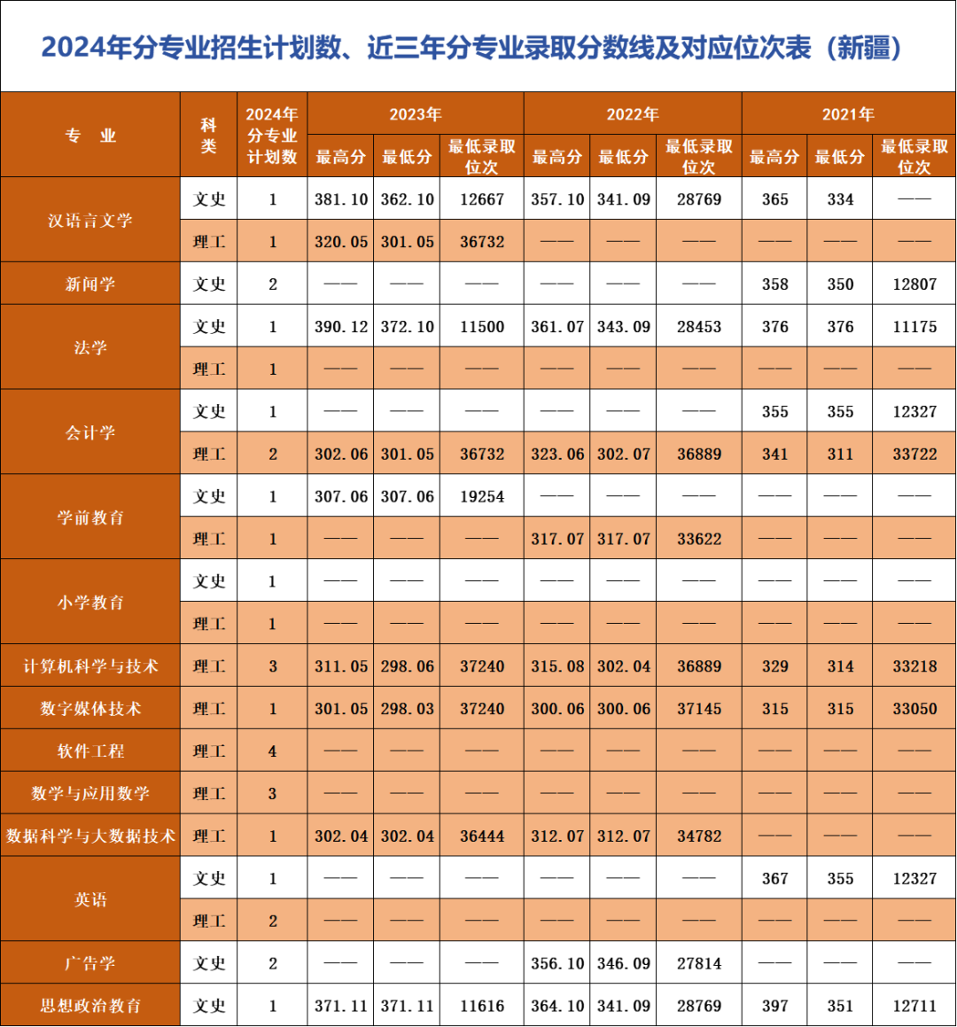 *注:招生计划及对应位次情况以各省级招生考试管理部门公布为准。