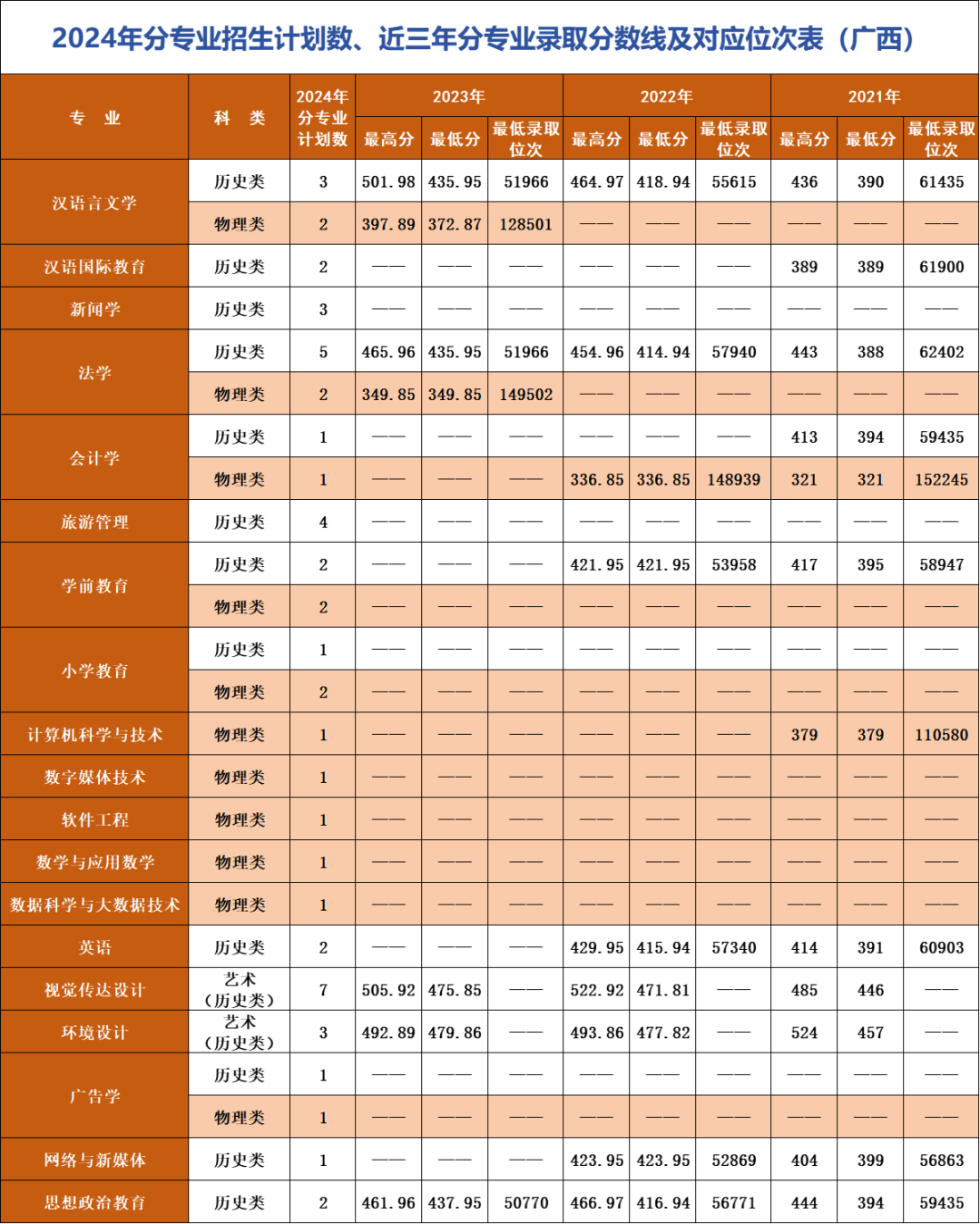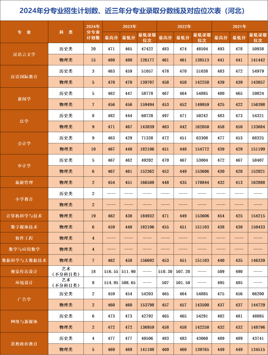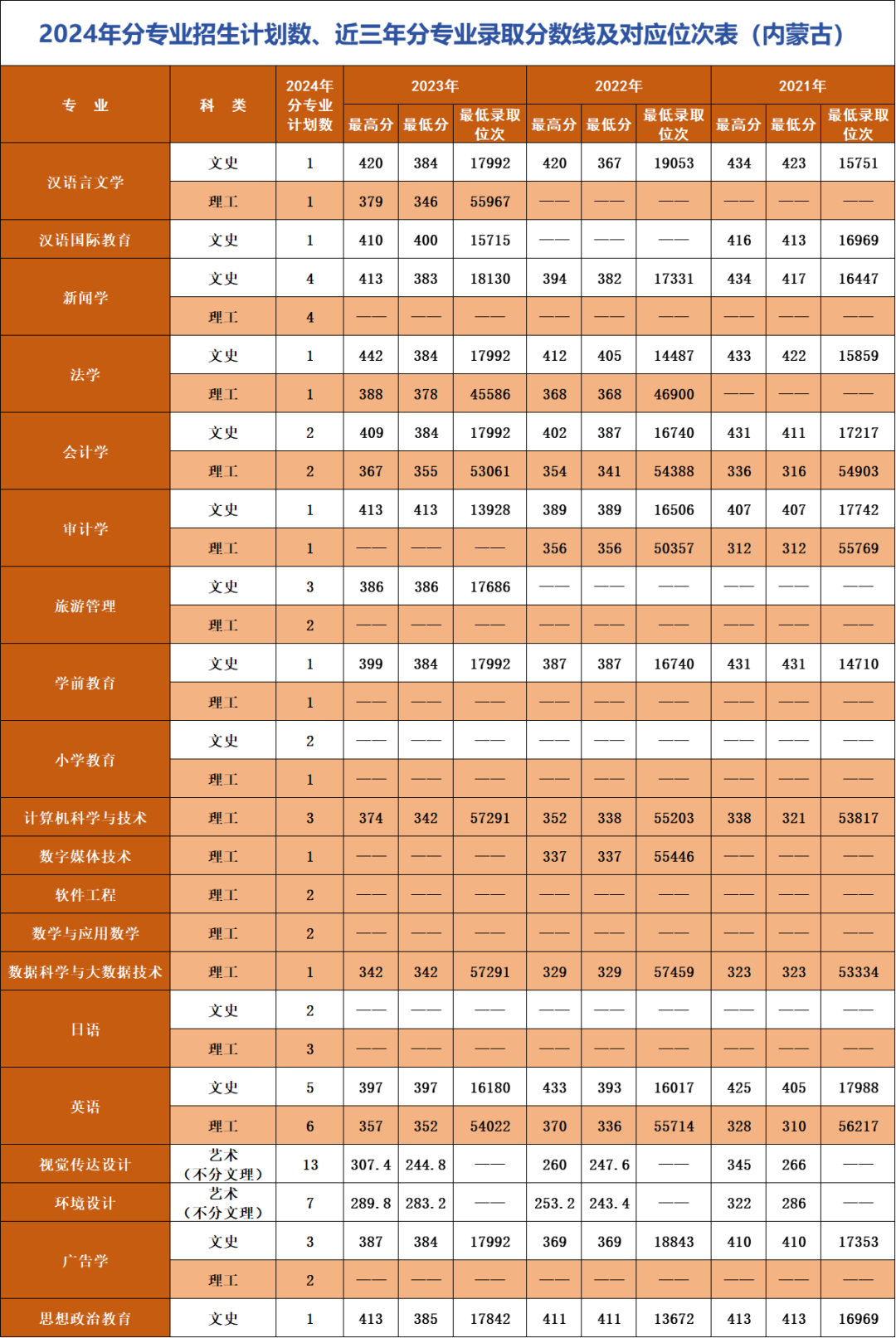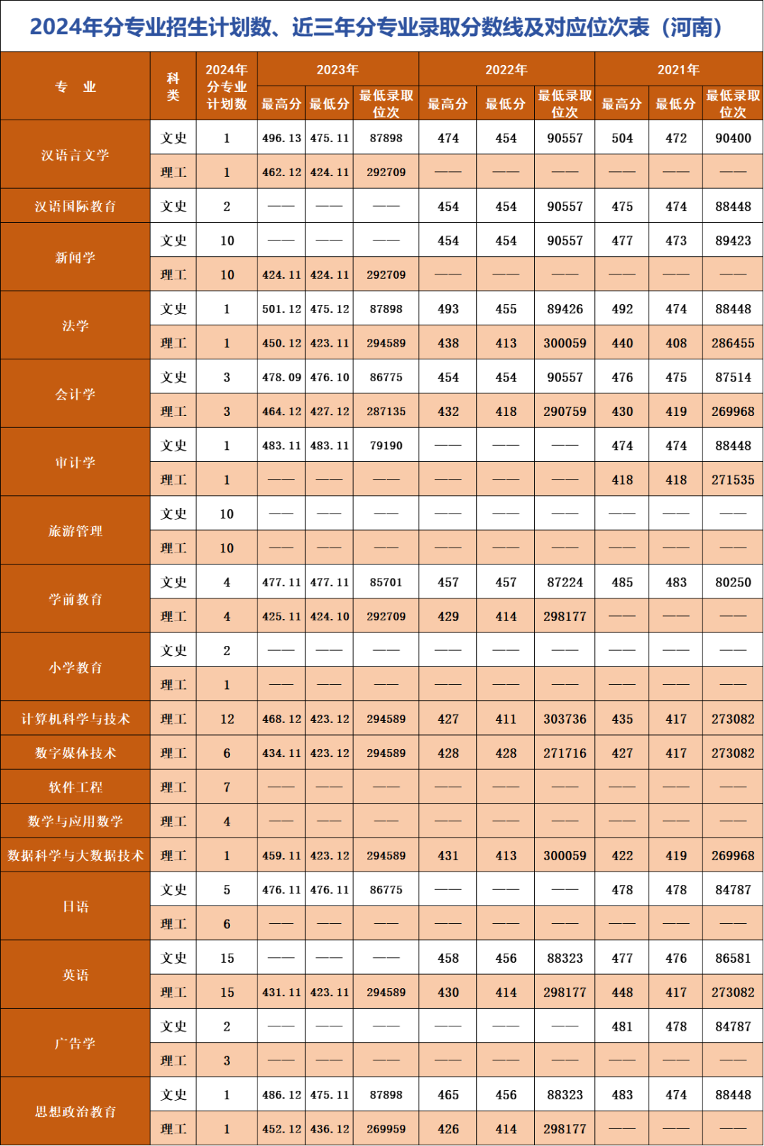 *注:招生计划及对应位次情况以各省级招生考试管理部门公布为准。