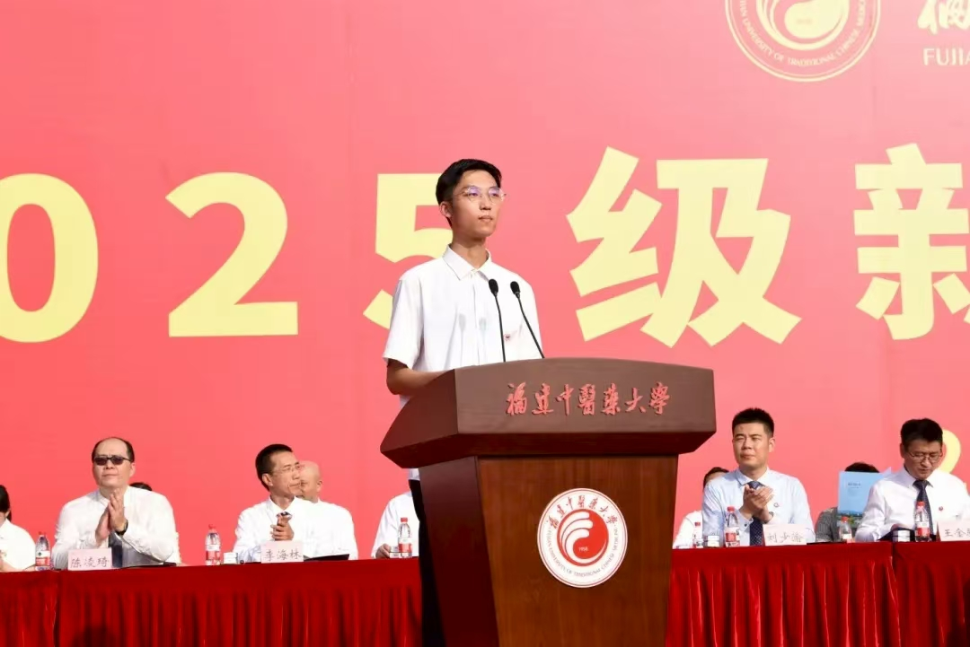 9月,福建中医药大学举行了2025级新生开学典礼,校长以“远志”、“厚朴”、“熟地”三味中药寄语新生,蔡抒翰深有感触。他作为新生代表登台发言,从校长的寄语出发,分享了自己对中医药的理解与向往:“我愿如‘熟地’一般,在一次次‘蒸晒’中去浮存真、涵养底蕴;亦愿以‘远志’为灯、以‘厚朴’为梯,真正成长为一名既承古训、又融新知的当代中医人。”