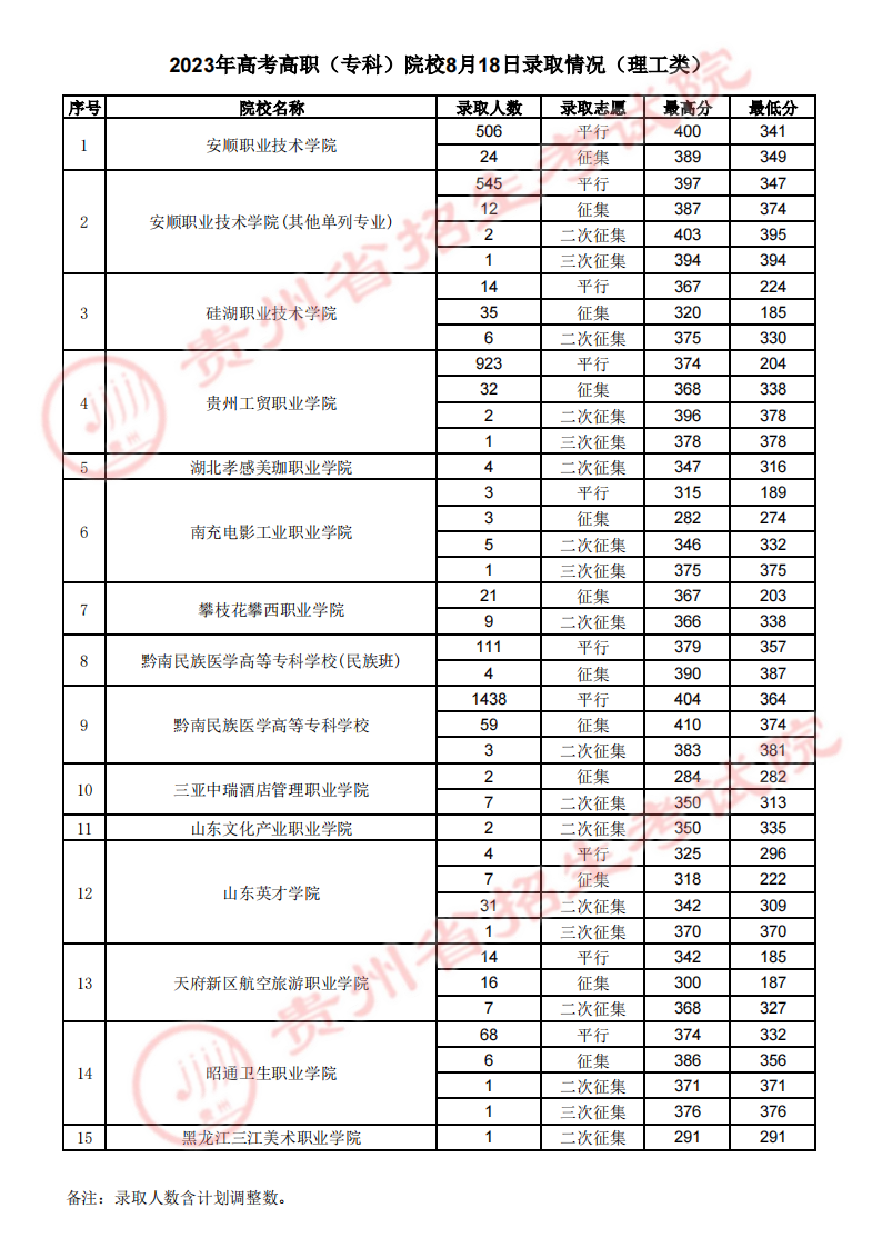 2023年高考高职(专科)院校8月18日录取情况