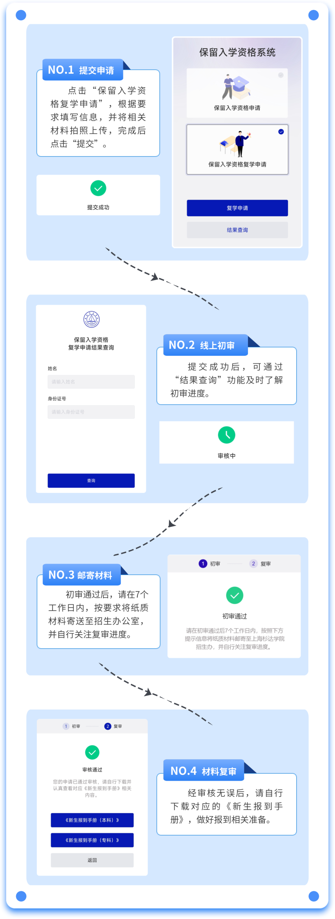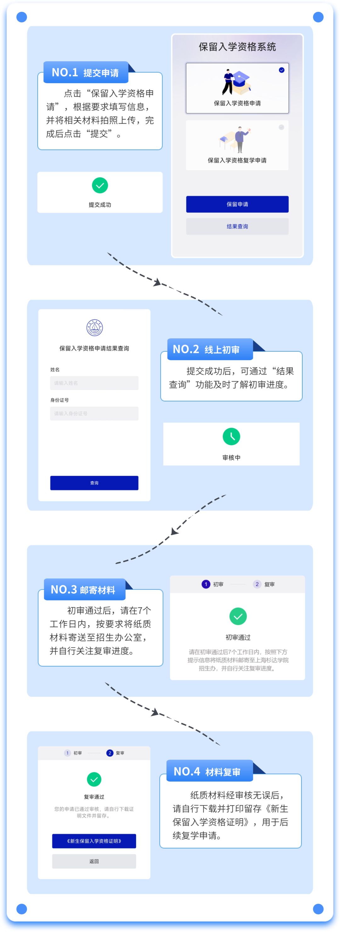 保留入学资格期满者须在保留年限结束当年的8月20日前完成入学审批,请按如下流程进行线上办理: