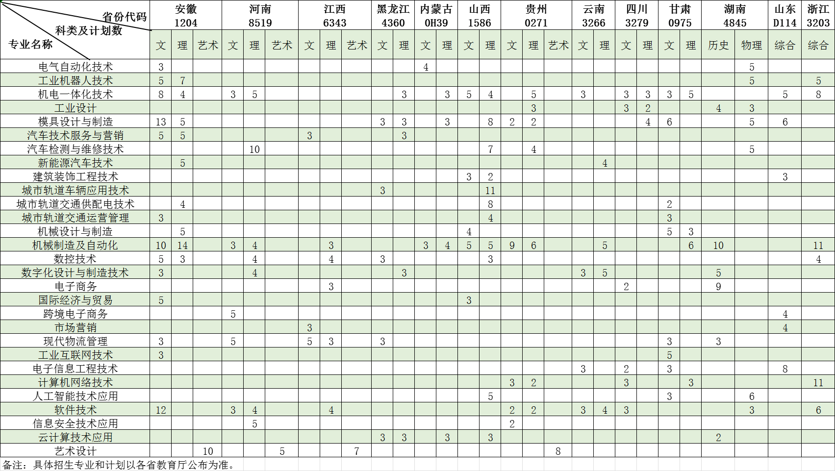 2022年外省普通高考招生计划一览表