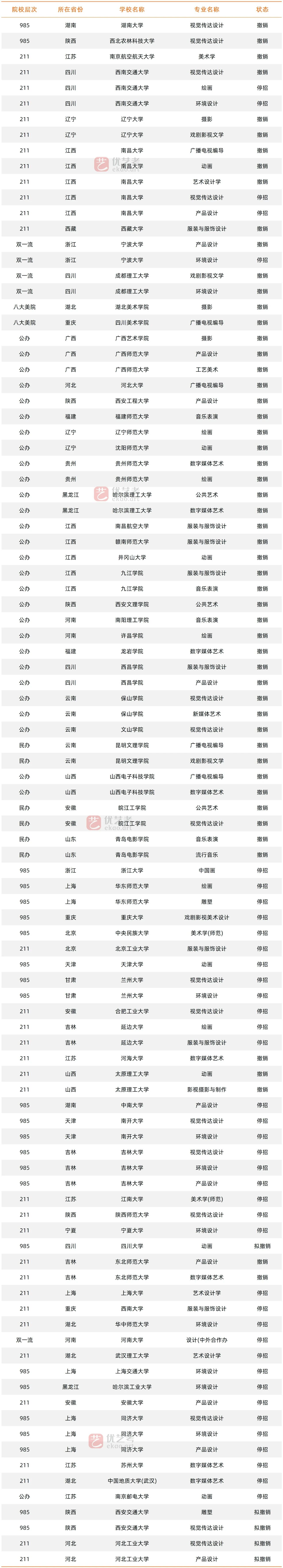 除了上述这些大学,优艺考还整理了2025年撤销和停招艺术类专业的高校,供各位考生和家长参考: