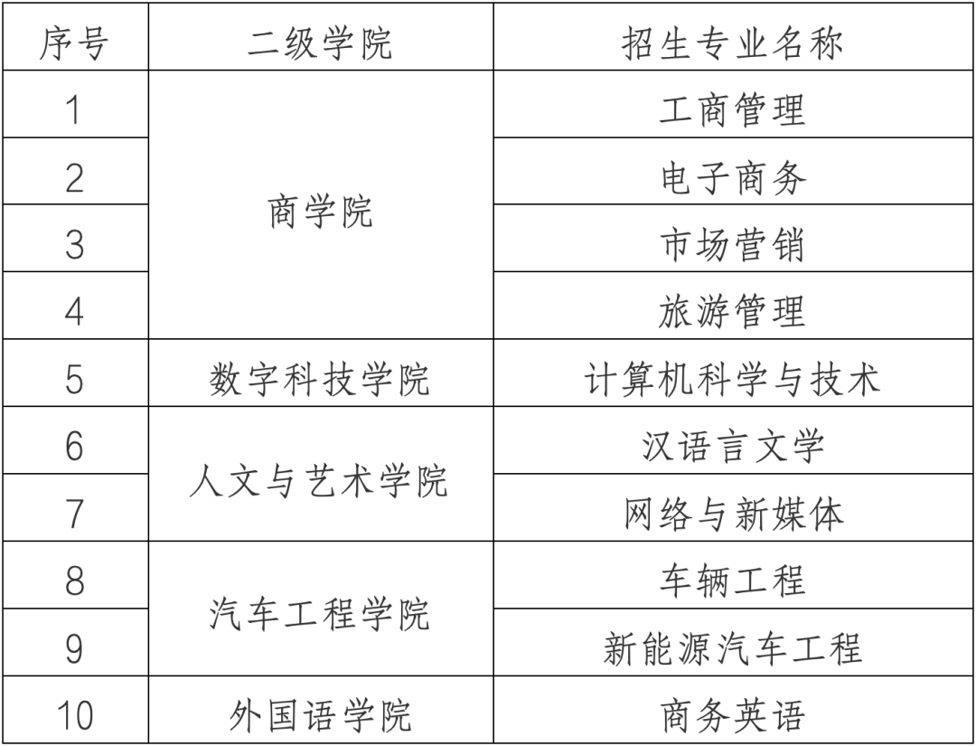 第三章 招生计划及招生专业(类)要求第九条 招生专业如下: