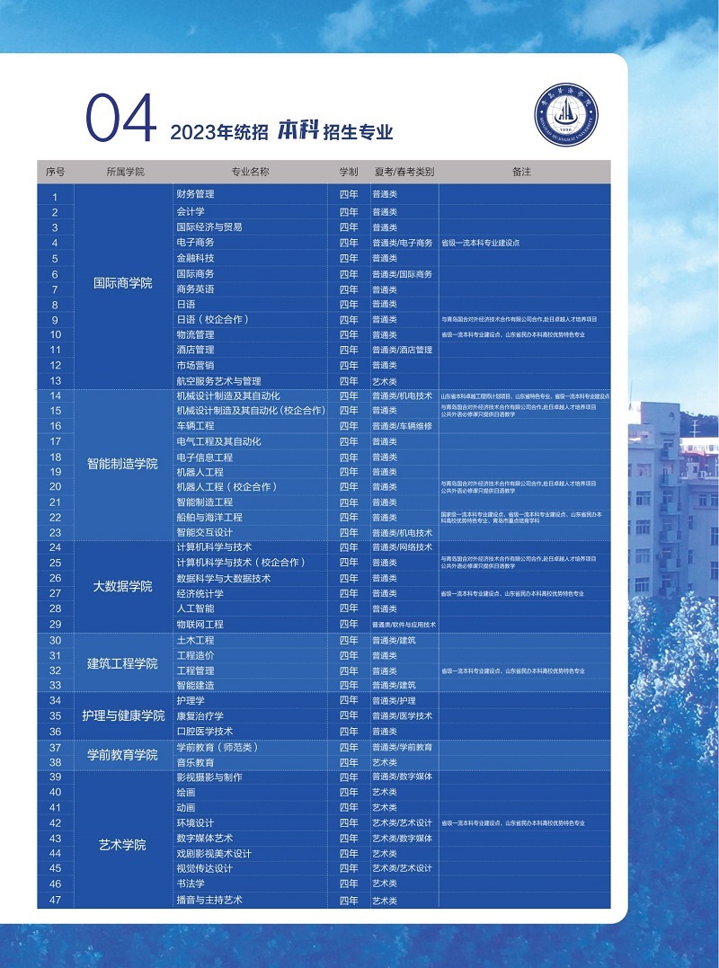 青岛黄海学院2023年招生简章