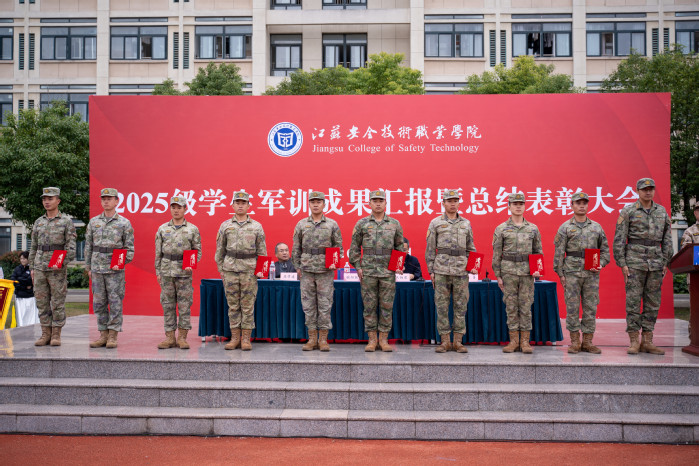 秋色浩无迹,风露洗晴空。10月24日,学校隆重举行2025级新生军训成果汇报暨总结表彰大会。全体在家校领导出席大会。驻徐某部队政治教导员陈宏艺、欧阳凯受邀出席大会。各相关职能部门负责同志、各二级学院党总支书记、全体教官、新生辅导员及2025级全体学生参加大会。
