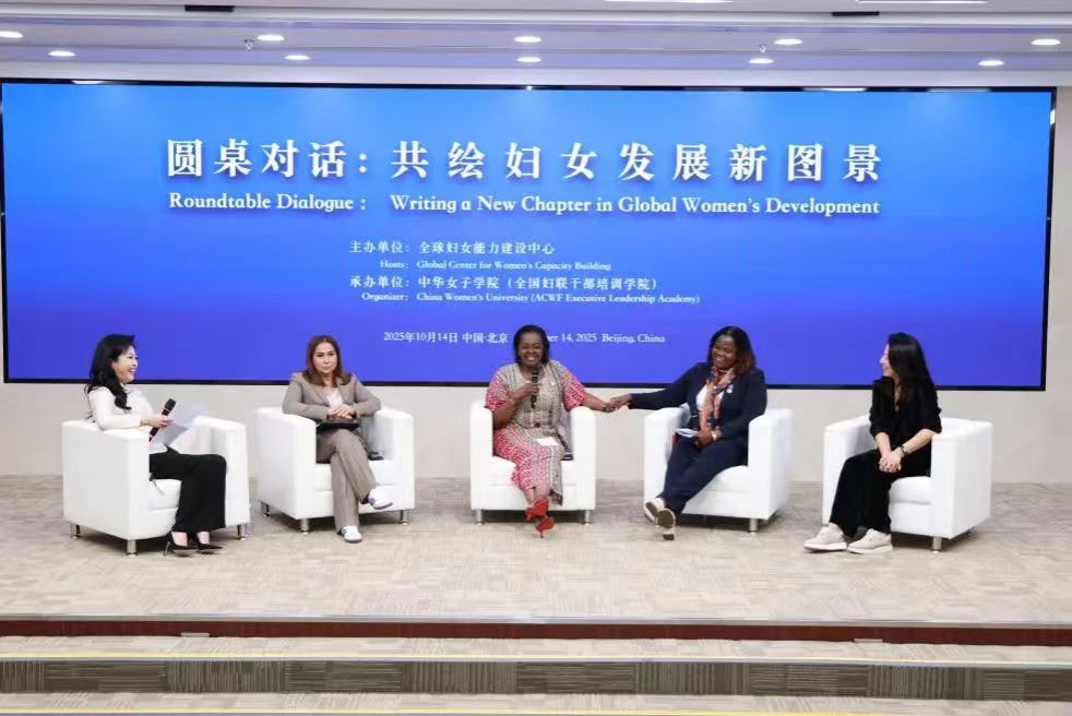 10月14日,“全球妇女能力建设中心”在中华女子学院(全国妇联干部培训学院)揭牌后,举办了主题为“共绘妇女发展新图景”的圆桌对话,多国代表立足北京世妇会召开30周年的重要节点,回应全球妇女峰会“命运与共:加速妇女全面发展新进程”的主题和精神,探讨推动全球妇女发展的思路和做法。
