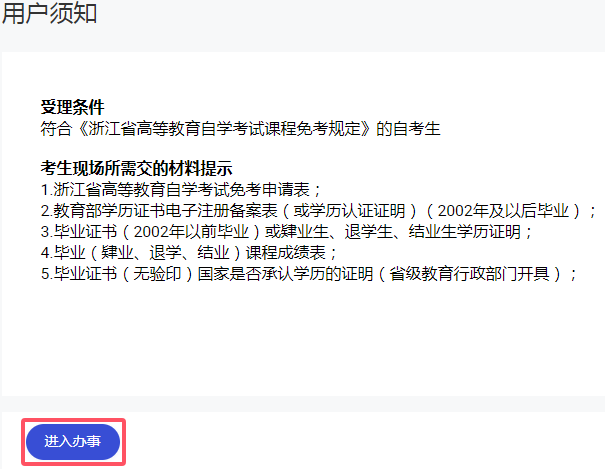 (二)浙江政务服务网办理课程免考申请登记