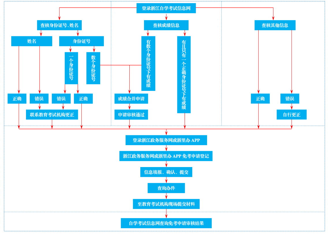 浙江省高等教育自学考试课程免考办理流程图