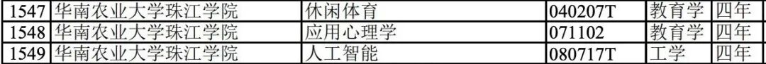 根据教育部关于公布2024年度普通高等学校本科专业备案和审批结果及《普通高等学校本科专业目录(2025年)》的通知,华南农业大学珠江学院成功获批休闲体育、应用心理学、人工智能三个专业,预计2025年开始高考招生。
