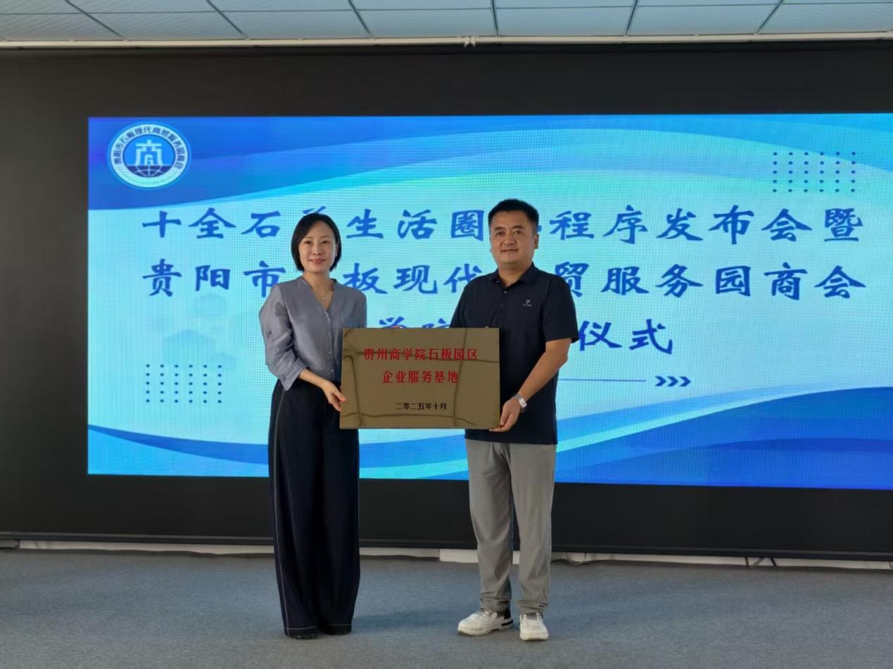 我校为石板现代商贸服务园战略合作单位,贵州商学院党委常委、副校长成蕴琳代表学校向石板现代商贸服务园授予“石板园区企业服务基地”牌匾,此次授牌是“政—校—企”三方协同共建取得的又一重要阶段性成果。标志着校地合作进一步走向深入,推动产学研深度融合迈上新台阶。通过共建企业服务基地,各方将整合优势资源,共同推进应用型人才培养与产业需求对接,进一步增强高校服务地方经济发展的能力,为石板园区企业成长与区域经济高质量发展注入新动能。