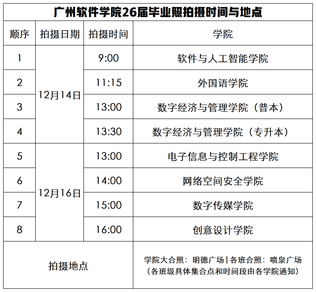 2026届毕业照拍摄活动安排表