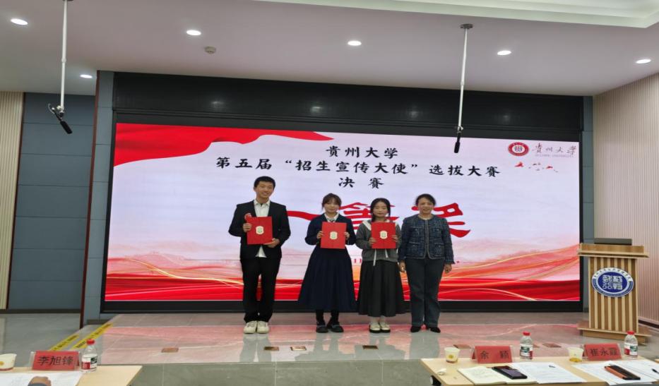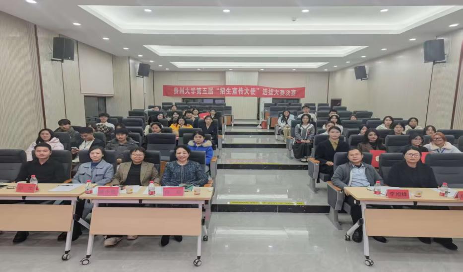 为加强学校招生宣传队伍建设,吸引更多学生参与爱校、荣校宣传,鼓励在校学子分享贵大故事、传递校园温度,提升生源质量,2025年11月11日晚,贵州大学第五届 “招生宣传大使” 选拔决赛在公共管理学院雅正楼123报告厅成功举办。