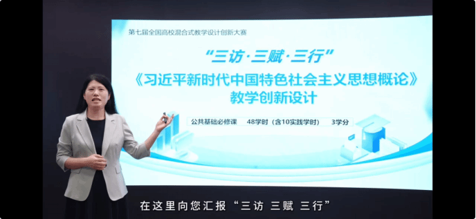 本次参赛课程“习近平新时代中国特色社会主义思想概论”实施“三访·三赋·三行”教学模式,以学生为中心设计教学内容、构建教学场景、引进数字化技术,有效提升了课堂的吸引力和实效性,引导学生深入学习理解党的创新理论,实现了“学而信、信而行”。在校领导的关怀下,在教务部的大力支持下,王欢教授及其团队教师(刘旸、韩冰、任琳、雷娜)认真备赛,精益求精,多次开展线上线下集体备课与研讨交流,精心磨课,不断优化教学设计,将理论知识与现代教育技术相结合,实现了教学创新的新突破。