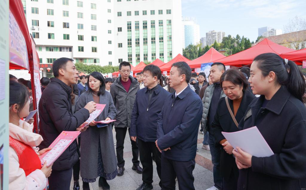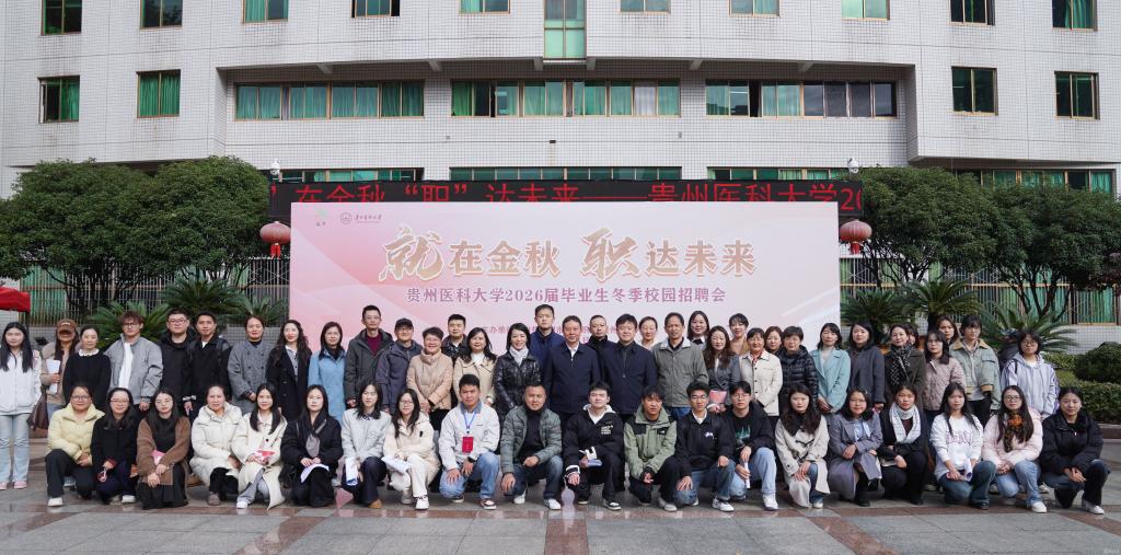 11月21日,贵州医科大学2026届毕业生冬季校园招聘会在北京路校区隆重举行。校党委书记汤磊,党委常委、副校长洪峰亲临现场,与多家用人单位代表及毕业生亲切交流。各学院相关负责人、毕业班辅导员及2026届毕业生共同参加。