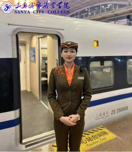 (高铁素玲同学在海南易铁动车公司从事乘务长一职)
