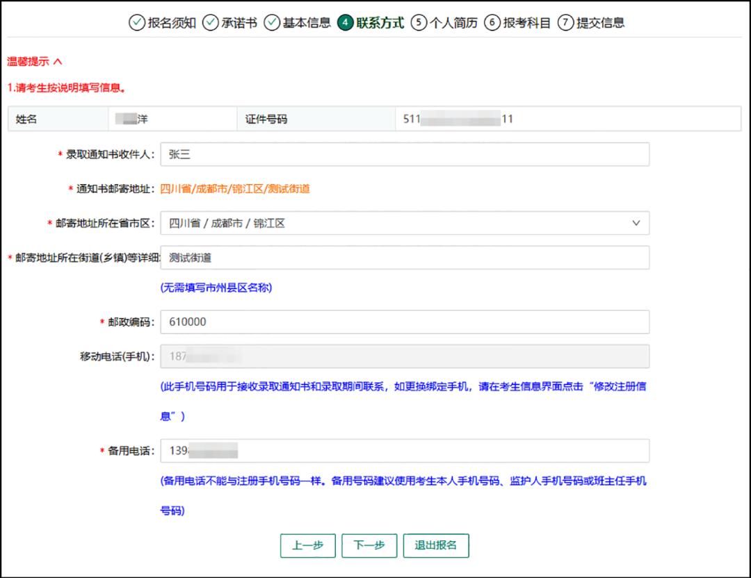 至此,考生网上报名流程完毕,考生填报的报名信息不能再做修改。如个人报考信息填报错误,应主动联系县级招考机构,并按要求提交书面申请。