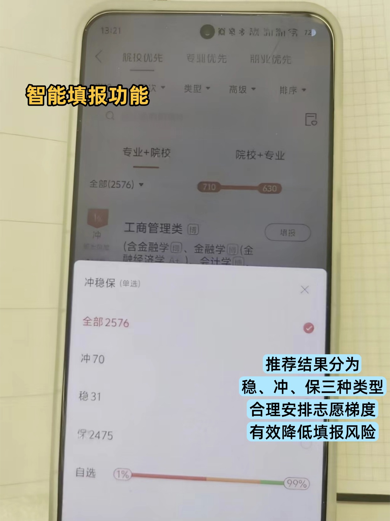 考生根据自身需求,筛选得到的推荐结果,共有院校优先、专业优先、职业优先三种模式可供选择。