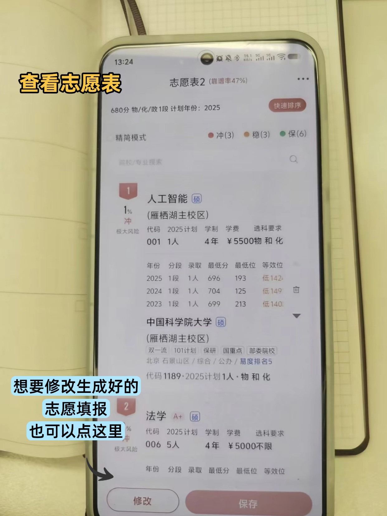 定制好志愿表后就可以选择保存,生成的志愿表可在【我的】-【志愿表】中查看。