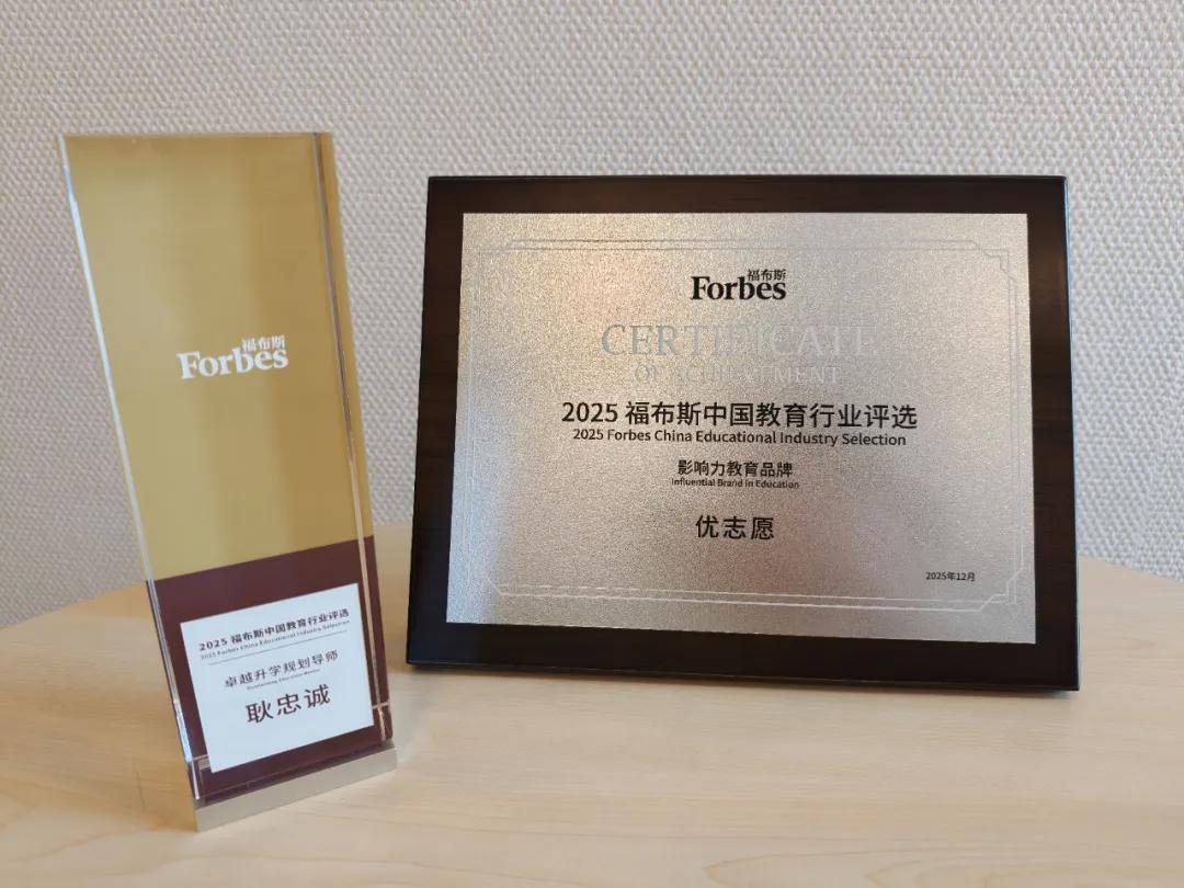 2025 年 12 月 15 日,2025 福布斯中国教育行业峰会在北京圆满落幕,国内升学规划领域头部品牌「优志愿」凭借在行业内的突出影响力与专业沉淀,荣获“2025 福布斯中国教育行业评选影响力教育品牌”,同时,优志愿 CEO 耿忠诚荣获“2025 福布斯中国教育行业评选卓越升学规划导师奖”,双项荣誉加身,彰显优志愿在升学规划赛道的标杆地位。