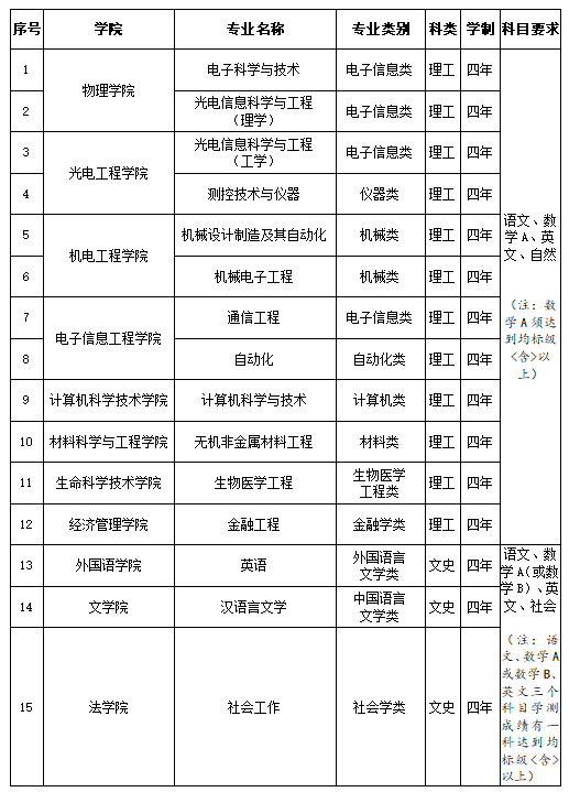 长春理工大学2026年招收台湾高中毕业生专业一览表
