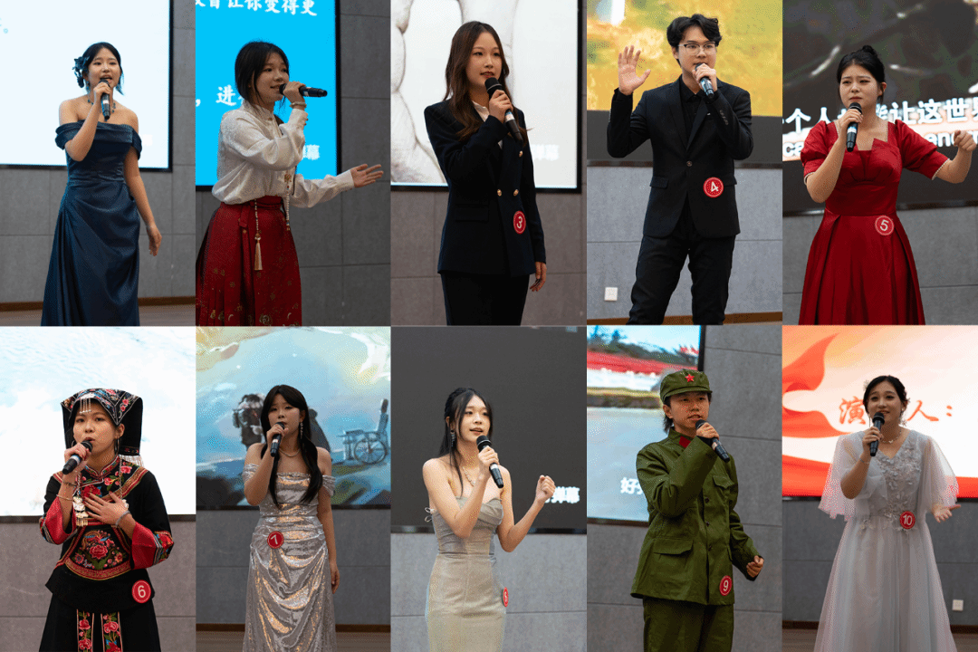 决赛分为“创意自我介绍”“主题演讲”和“即兴演讲”三个环节。比赛在30秒创意自我介绍中拉开序幕,现场气氛热烈。随后的观众投票环节进一步点燃了赛场热情。主题演讲环节,选手们在4分30秒内围绕主题,结合个人体悟与时代精神,呈现了内容充实、情感真挚的演讲。国际教育学院刘永锐以《草鞋映初心,大山铸脊梁》致敬艰苦奋斗精神;城市建设学院李祉衡通过《王维舟爷爷的红色皮箱》讲述动人故事,引发共鸣。即兴演讲环节充分考验选手的应变能力与知识储备,他们围绕随机抽取的题目进行90秒的即兴演讲。最终,总分排名前三的选手进入冠军争夺战,围绕“我找到了____的力量”这一主题进行2分钟即兴演讲,角逐最终冠军。