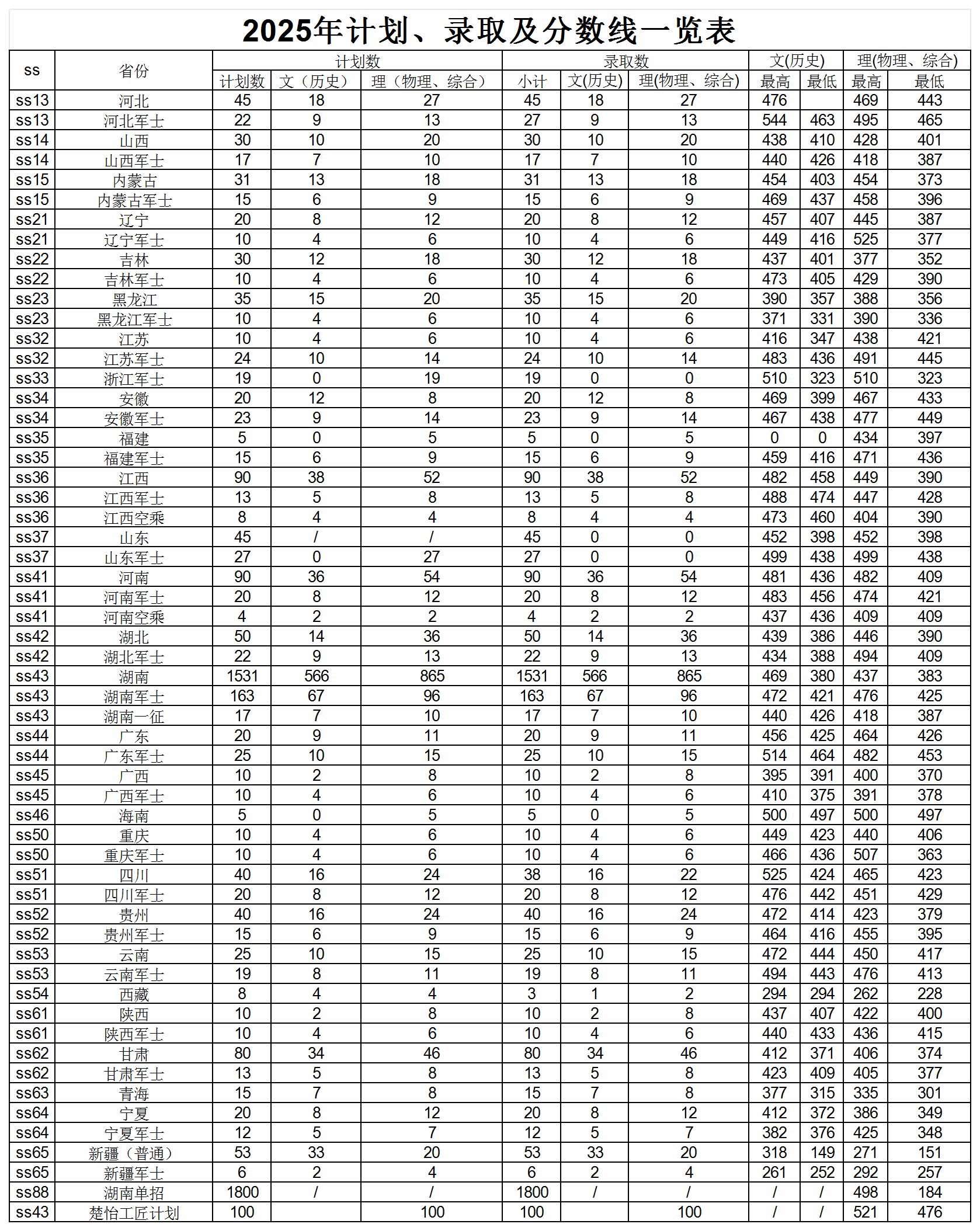 2025年招生计划、录取及分数一览表