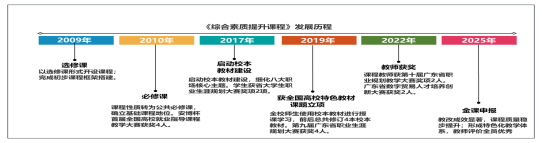 自 2009 年开设以来,《综合素质提升》课程历经 16 年迭代优化,形成了 “校内双师 + 行业专家” 的优质教学团队,构建了理论教学、实践训练与行业对接三位一体的教学体系。