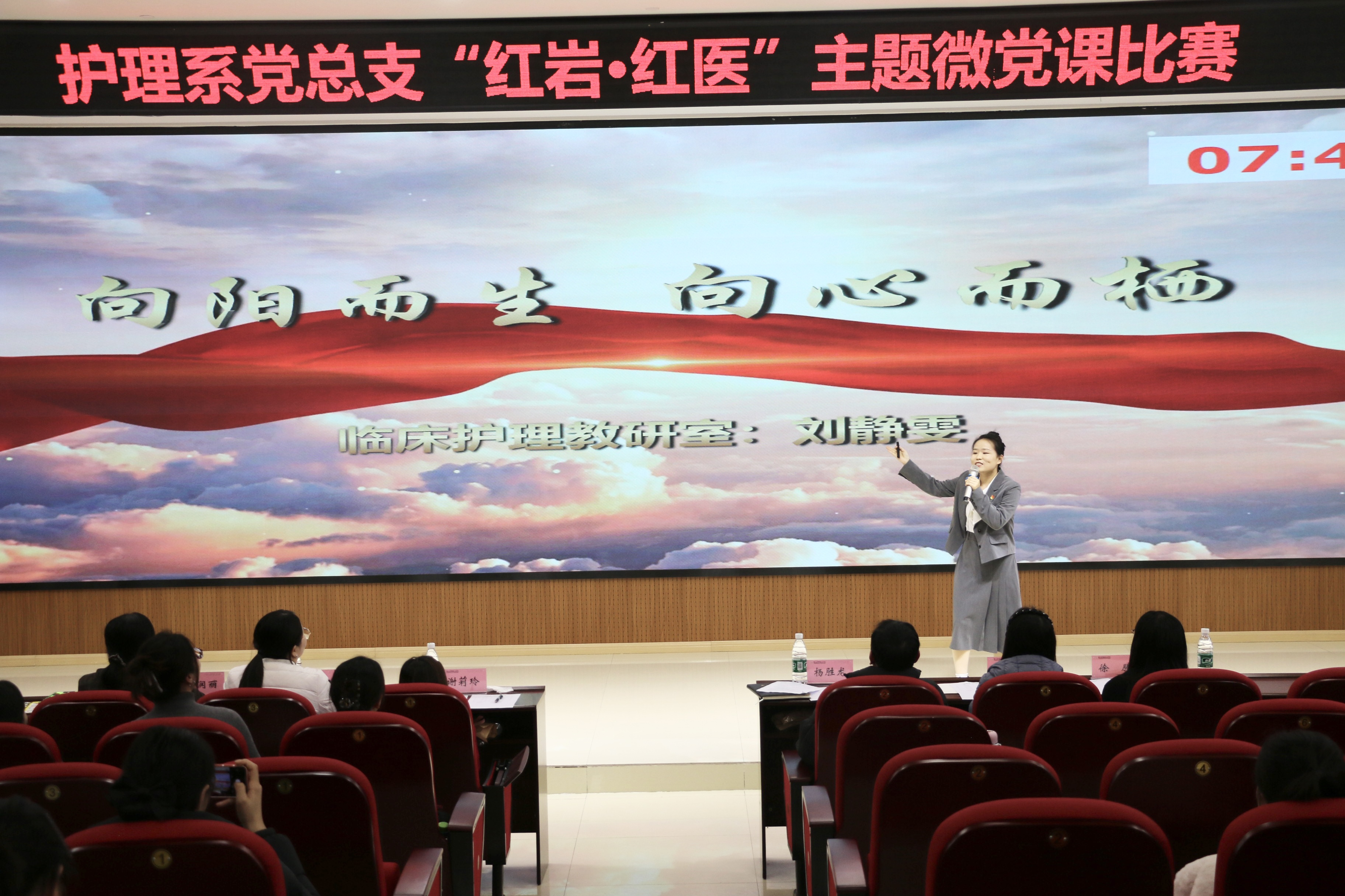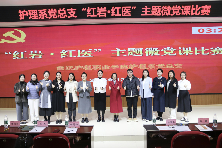 12月18日,护理系党总支在明德楼104报告厅成功举办“红岩·红医”主题微党课比赛。比赛现场,7名参赛党员围绕红岩精神与红医精神的传承,以《向阳而生,向心而栖》《穿越时空的听诊器》等7个主题,从理想信念、历史传承、职业初心、时代担当等维度展开讲述,生动再现了革命年代医护工作者在战火中坚守初心、以生命守护生命的感人事迹。