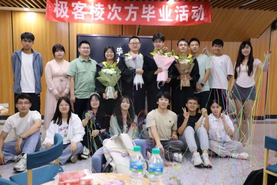 实验室搬到“双创”大楼后,集体氛围更加浓厚。本科生与研究生同桌而坐,分享零食、交流想法,轻松、开放、包容的环境让创新火花不断迸发。不同专业的学生在此找到归属感,也让极客棱次方真正成为一个凝心聚力、共同成长的创新共同体——成员们在这里不仅是并肩作战的队友,更是互相扶持、携手前行的家人。