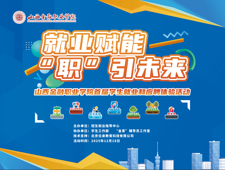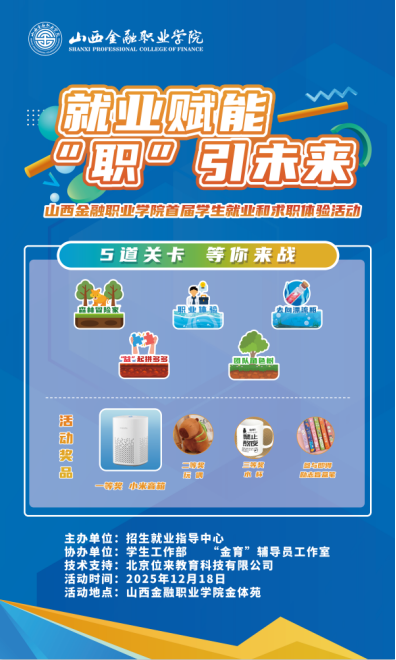 为助力同学们顺利实现从校园到职场的身份转变,提升职业规划与求职应聘能力,学院招生就业指导中心精心策划了【山西金融职业学院首届学生就业与应聘体验活动】。本次活动以闯关互动形式展开,寓教于乐、寓学于趣,等你来挑战!