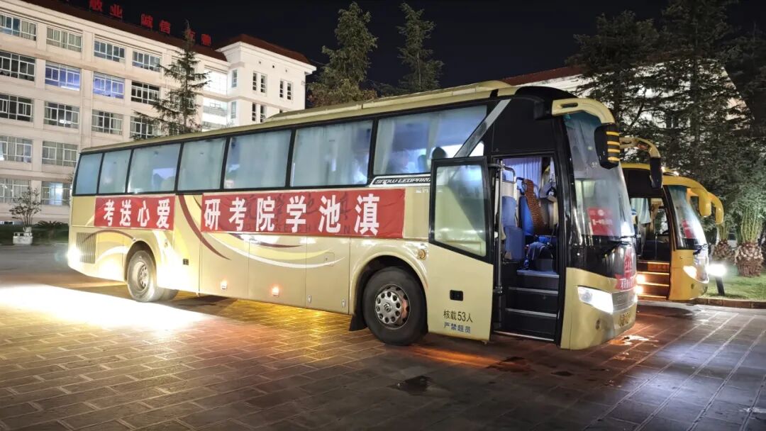 12月20日清晨,海埂校区英才广场上,送考专车早已整齐列队在指定候车点,学校送考老师也已整装列队,静候考研学子的到来。老师叮嘱学生们:“证件文具要仔细检查”,“放平心态,全力以赴”,温柔的话语如暖流漫过心间,驱散考前的紧张与不安。