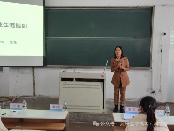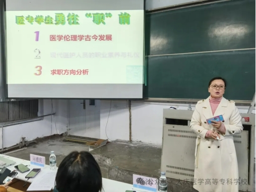 讲座邀请了就业创业专家,大庆广播电视台商业部主任子晗、哈尔滨医科大学大庆校区学生处副处长兼大学生就业指导中心副主任全艳和大庆现代技术职业学校教学党支部书记何德庆三位老师,分别以《筑梦巅峰无畏前行》《医学生职业生涯规划》《职业素养与礼仪》为题,围绕明确目标方向,心怀坚定理想信念,担负起神圣的医学使命,逐步实现人生目标;从认识自我、认清现实、理性决策、积极行动四个维度开展职业生涯规划;遵循职业操守、行为准则、礼仪规范,了解就业市场行情,评估自身求职定位,力争做一名受人尊敬的医务工作者三个方面,结合案例、由浅入深作了精彩的就业创业指导。讲座中,三位老师与学生们频频互动,激励同学们踊跃发言,交流体会,现场气氛高涨、活泼热烈。