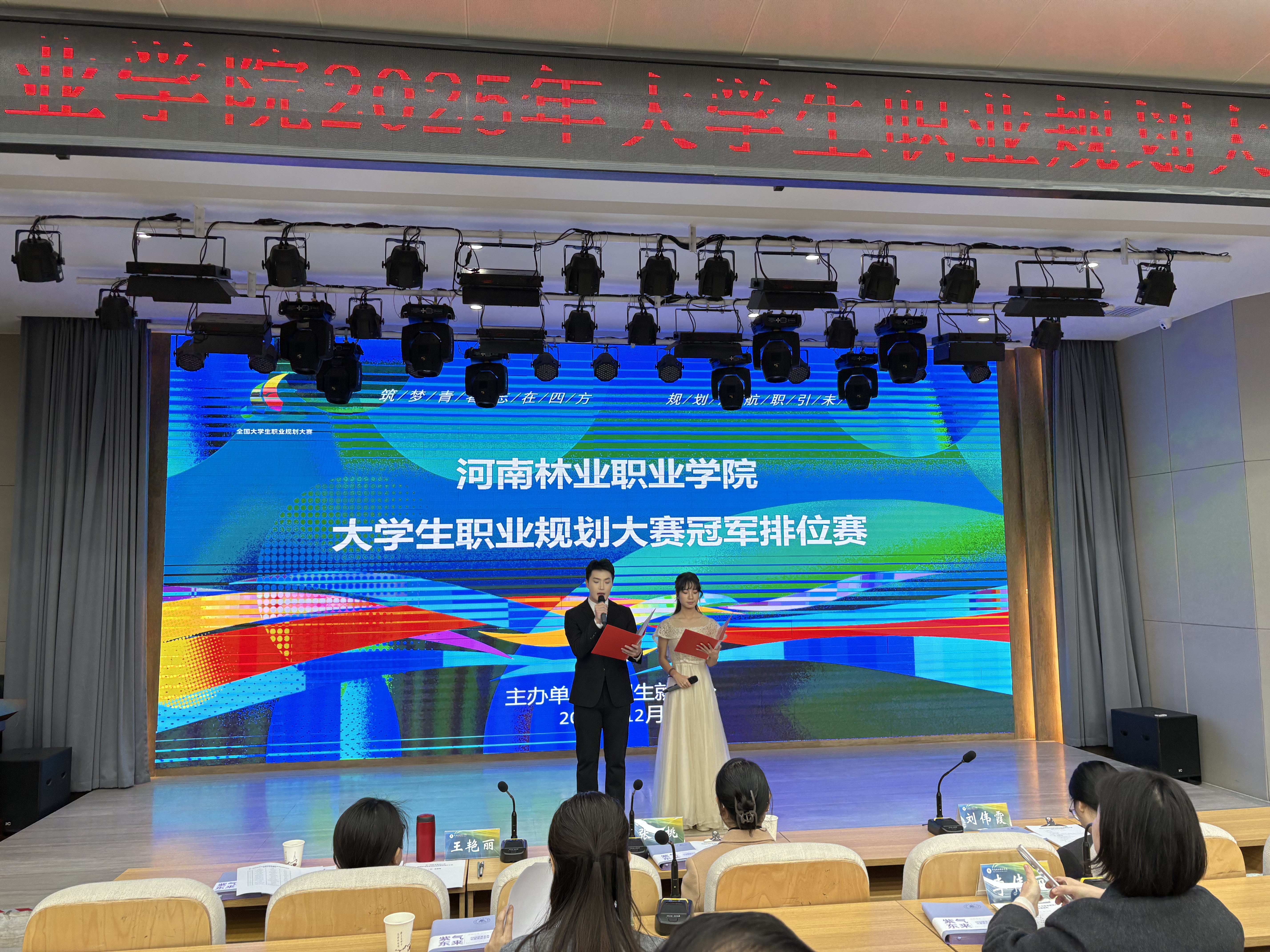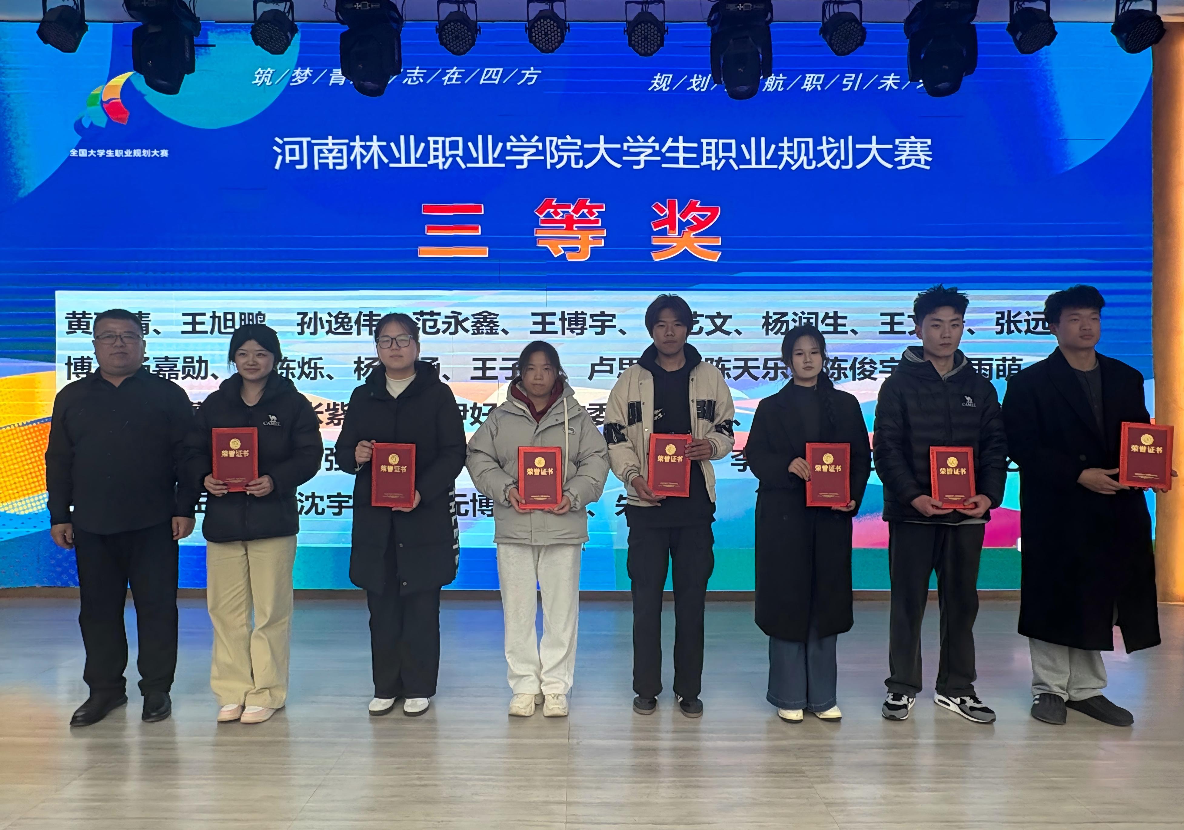 为深入贯彻落实国家关于促进高校毕业生就业创业的决策部署,推动生涯教育高质量发展,强化学生职业规划意识,我校于12月24日在中州校区会议中心成功举办“第三届全国大学生职业规划大赛河南林业职业学院冠军排位赛”。本次大赛由招生就业处主办,历时近两个月,涵盖学院初赛、校级争夺赛与冠军排位赛三个阶段,全程组织周密、推进有序,取得显著成效。
