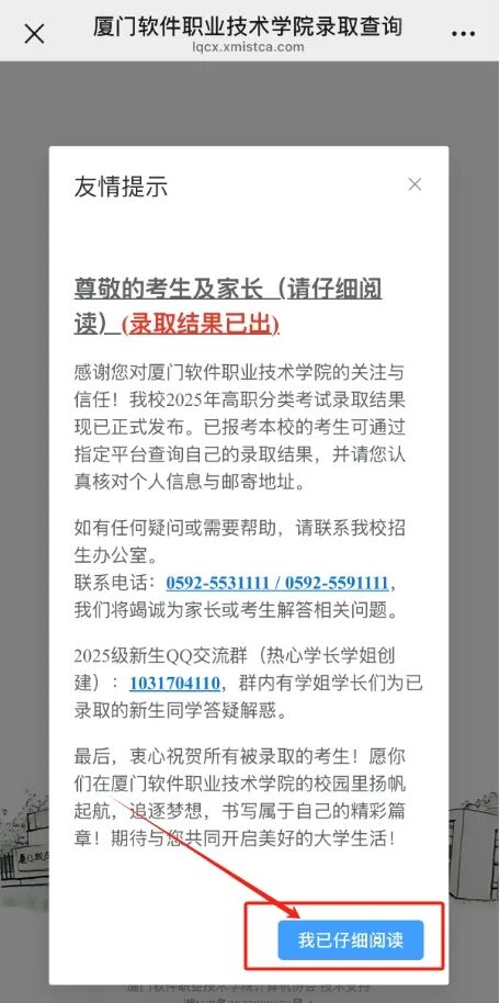 仔细阅读文字后,点击右下角的我已仔细阅读。
