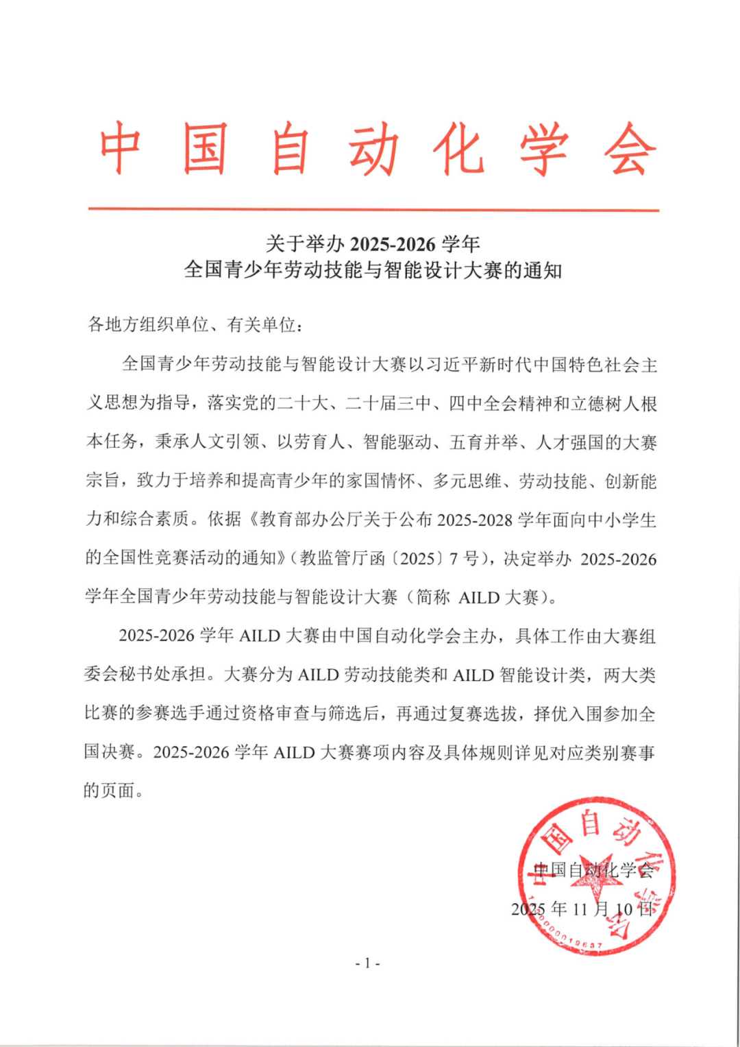 关于举办2025-2026学年全国青少年劳动技能与智能设计大赛的通知