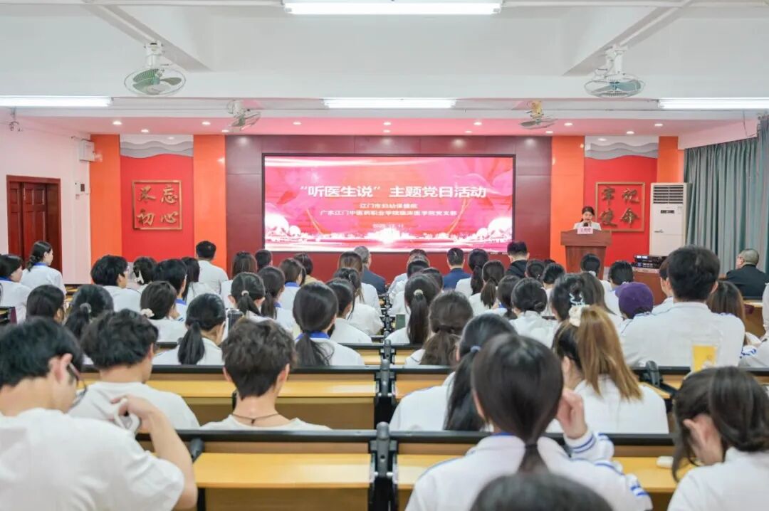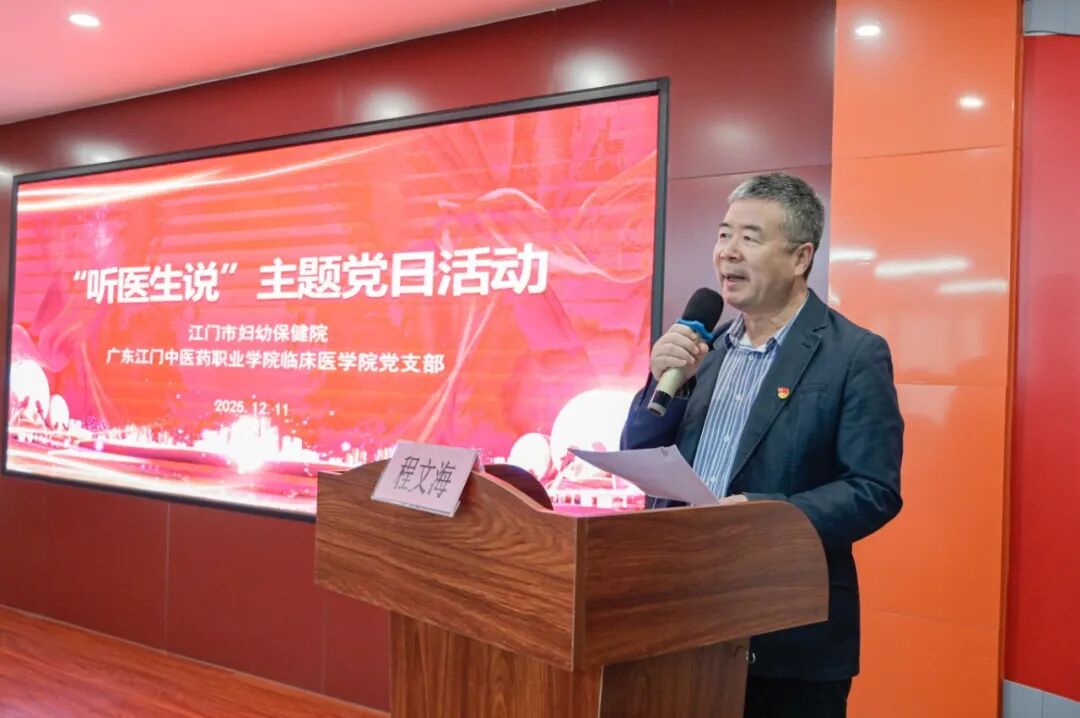 为贯彻落实“健康中国2030”战略,切实关爱青年学子的身心健康,普及权威、实用的临床知识,12月11日下午,广东江门中医药职业学院临床医学院党支部联合江门市妇幼保健院共同开展“听医生说”主题党日活动。活动通过健康科普、趣味互动等形式,将专业、温暖的健康服务送进校园。江门市妇幼保健院党委副书记、纪委书记曾健,广东江门中医药职业学院党委副书记、校长程文海等相关领导出席活动。